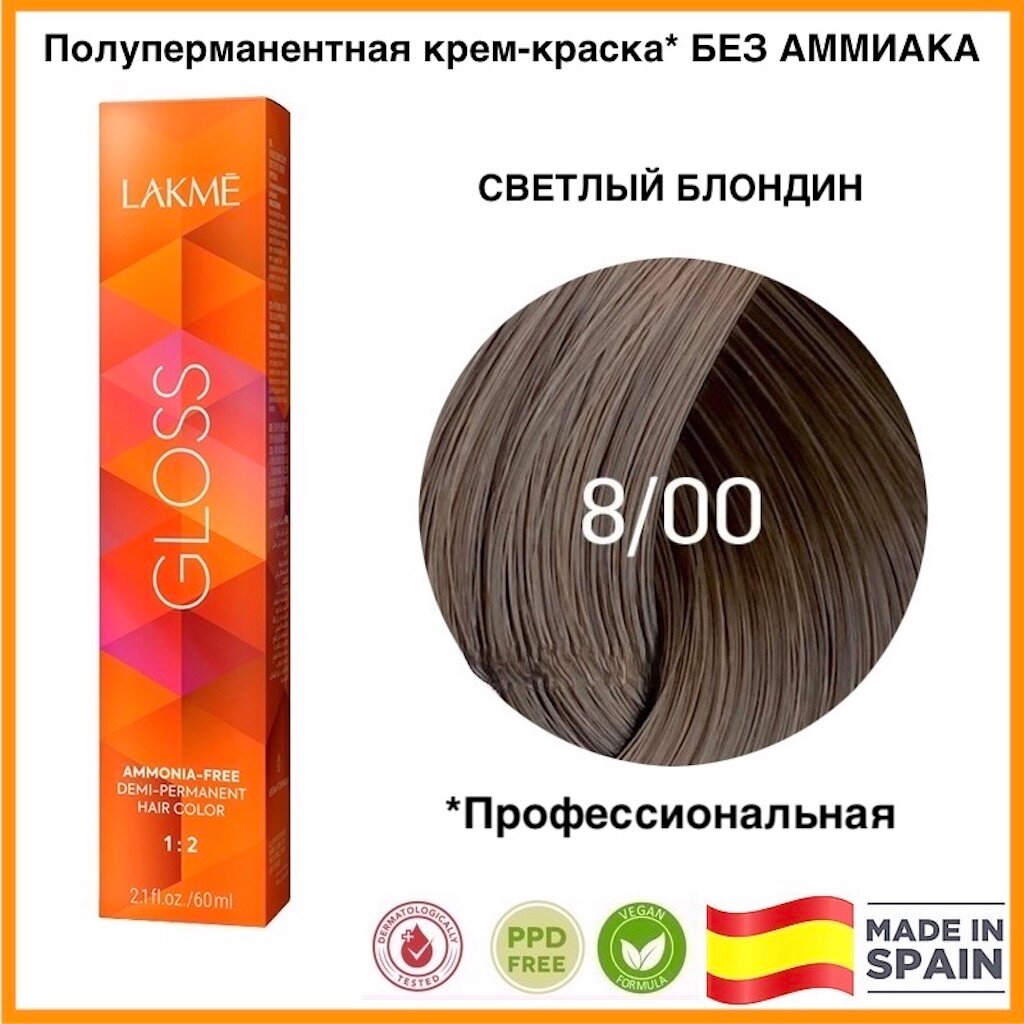 LAKMÉ, GLOSS, Крем-краска для волос тонирующая №8/00, светло-белокурый, 60 мл