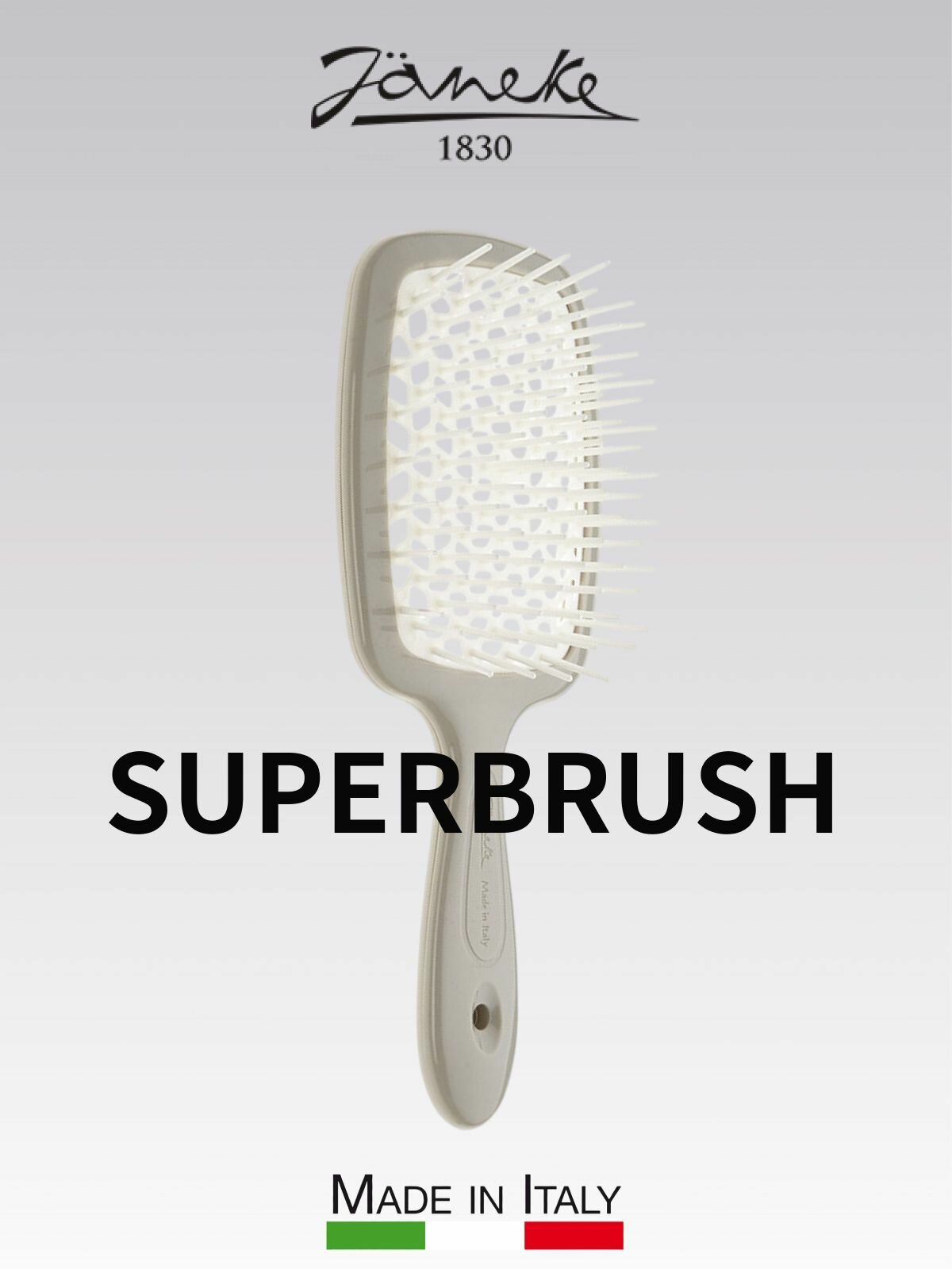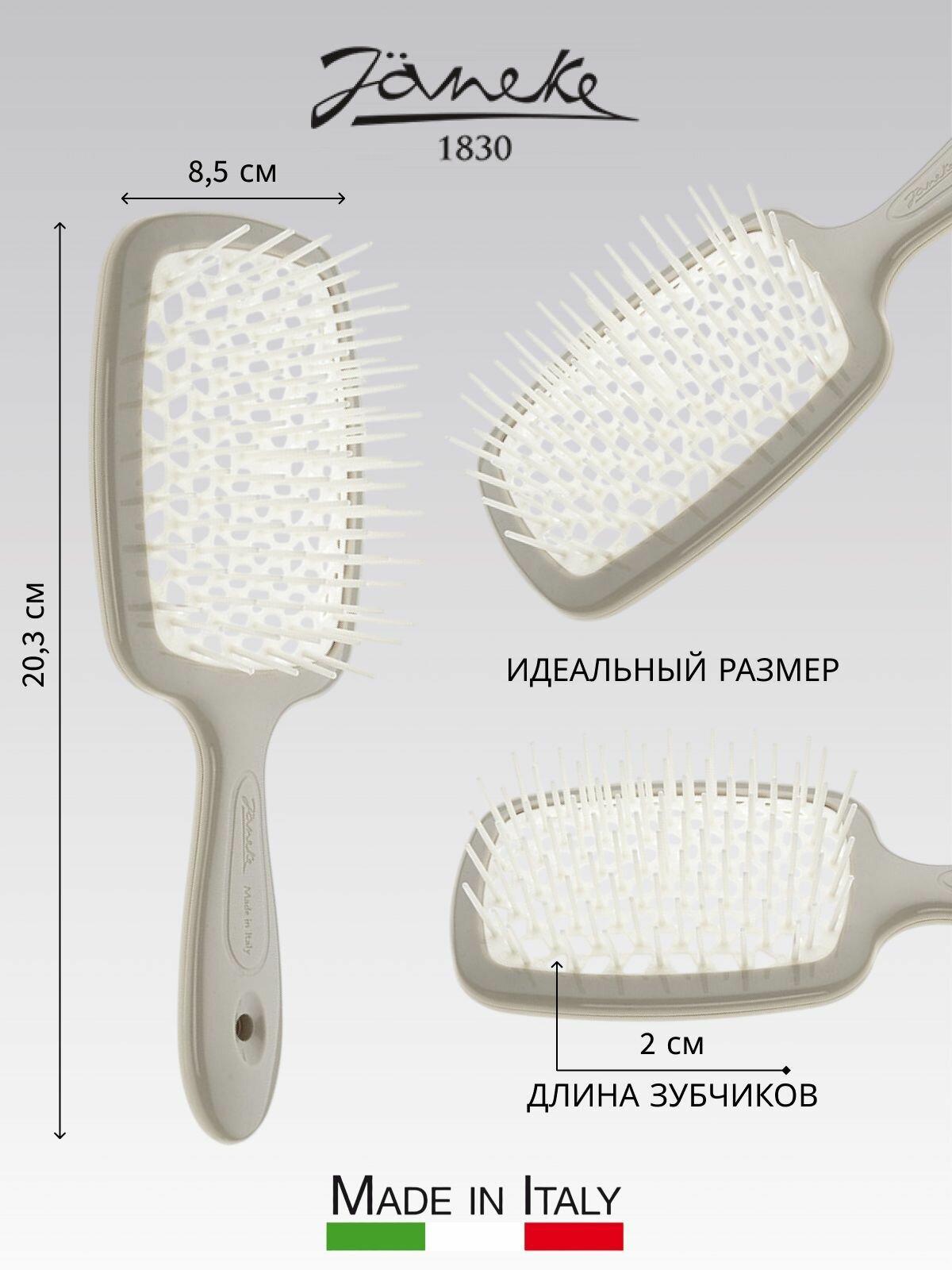 Janeke Щетка Superbrush с закругленными зубчиками, серо-белая, 20.3х8.5х3.1 см