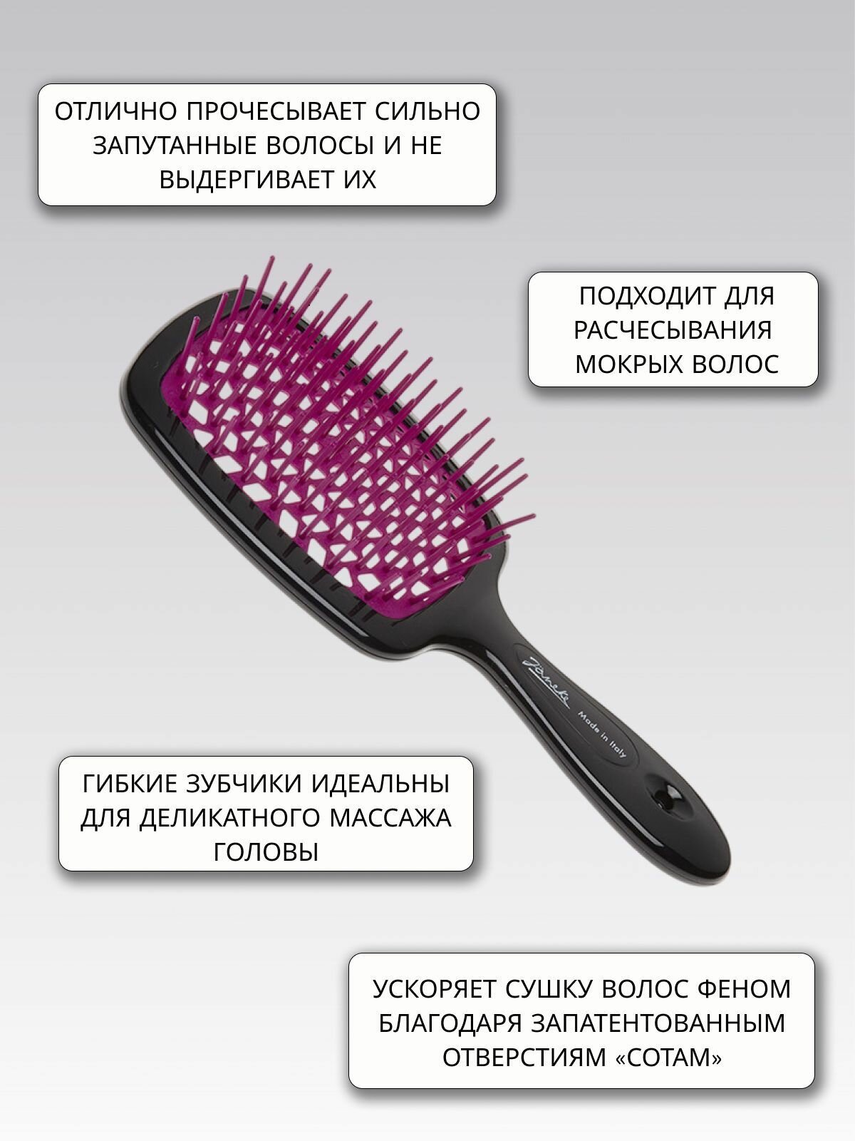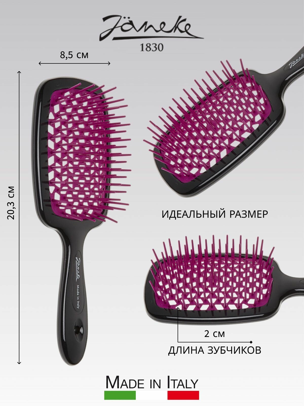 Щетка Janeke Superbrush с закругленными зубчиками, черный и фуксия, 20.3х8.5х3.1 см