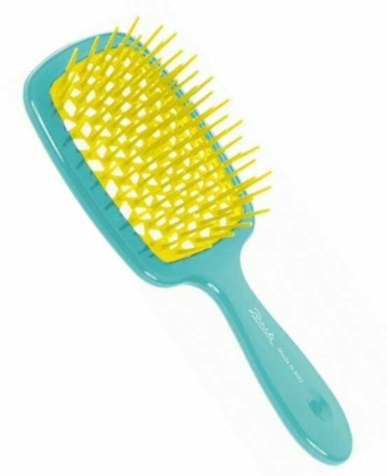 Janeke Щетка Superbrush с закругленными зубчиками, цвет морской волны и желтый, 20,3 х 8,5 х 3,1 см
