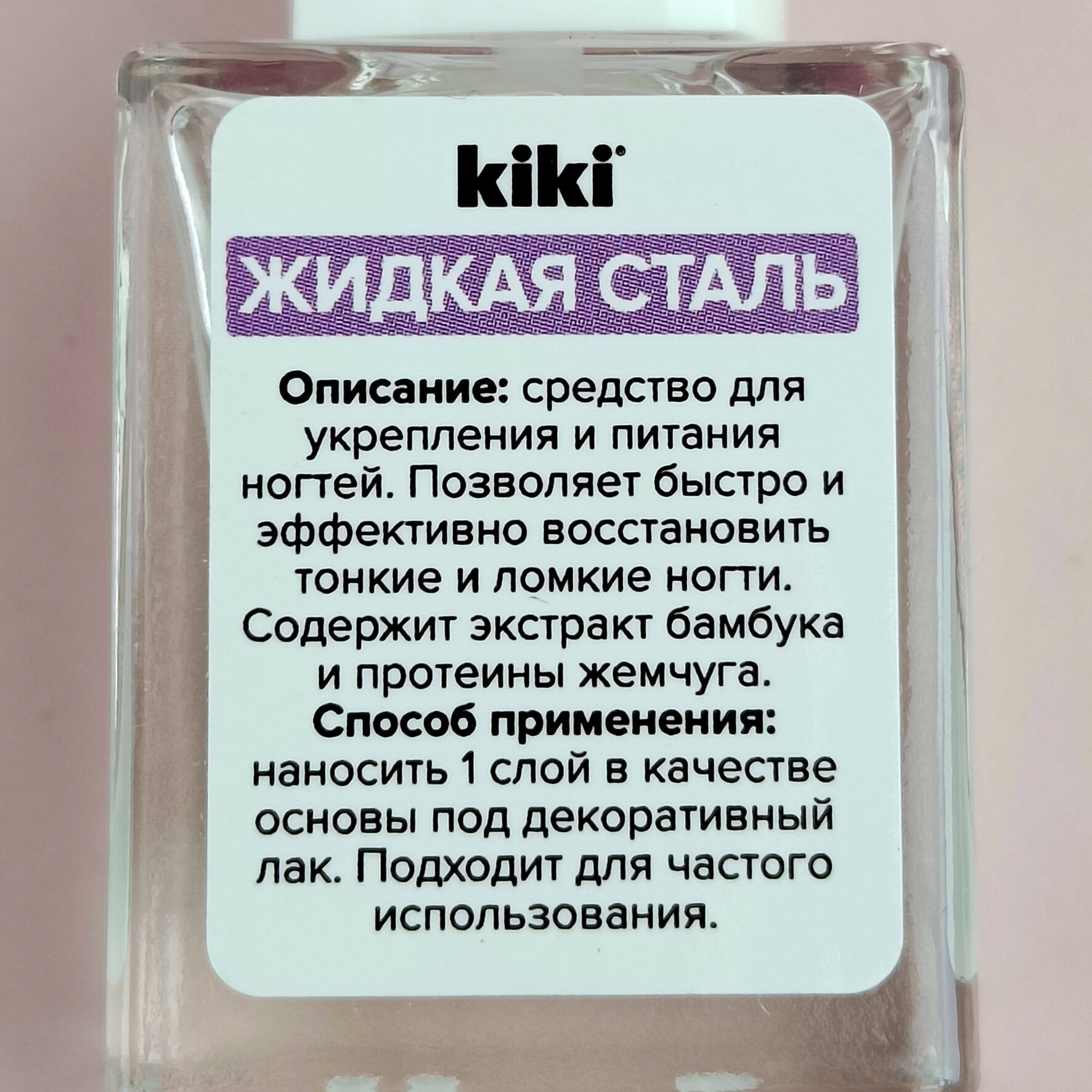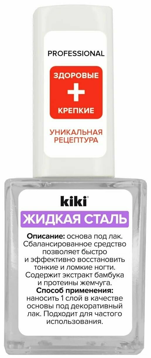 Средство для укрепления и питания ногтей kiki жидкая сталь, 10 мл.