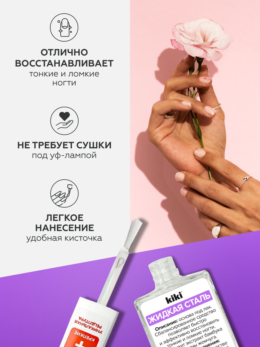 СохранитьСредство для ногтей kiki Жидкая сталь прозрачное покрытие под лак, укрепление и питание ломких тонких ногтей, 10 мл интересное: