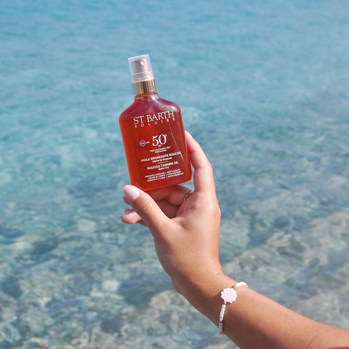 Купить Ligne ST BARTH Сухое масло помадного дерева SPF50+ для красивого загара // Roucou Tanning Oil Satin Dry Very High Protection SPF50+