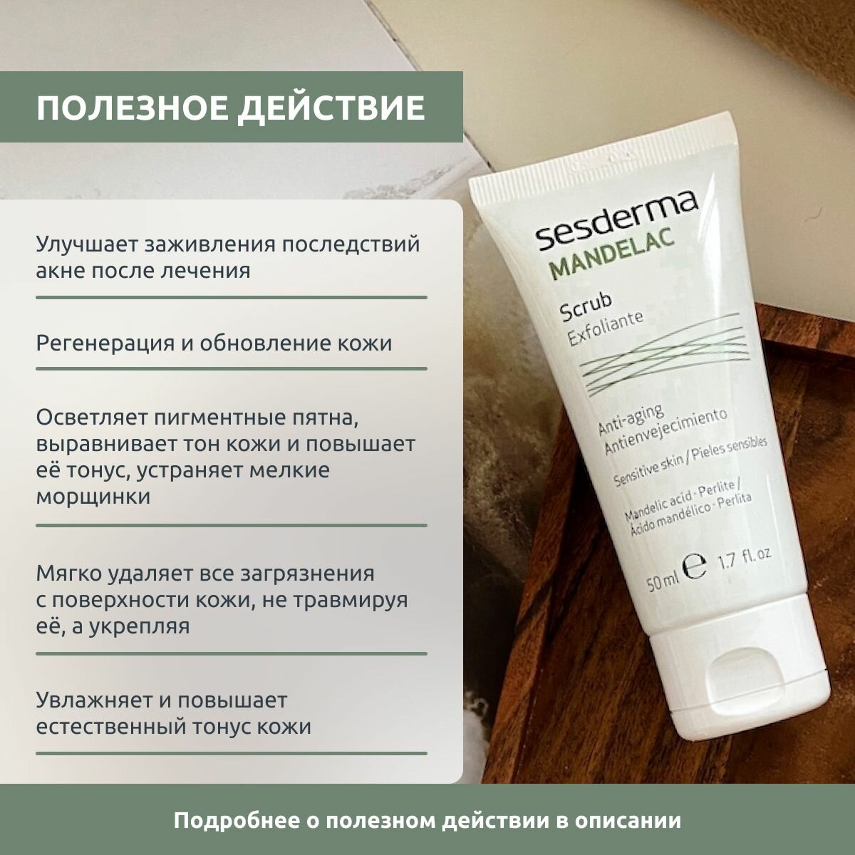 СохранитьSesderma MANDELAC - Скраб для лица и тела на основе миндальной кислоты, 50 мл интересное:
