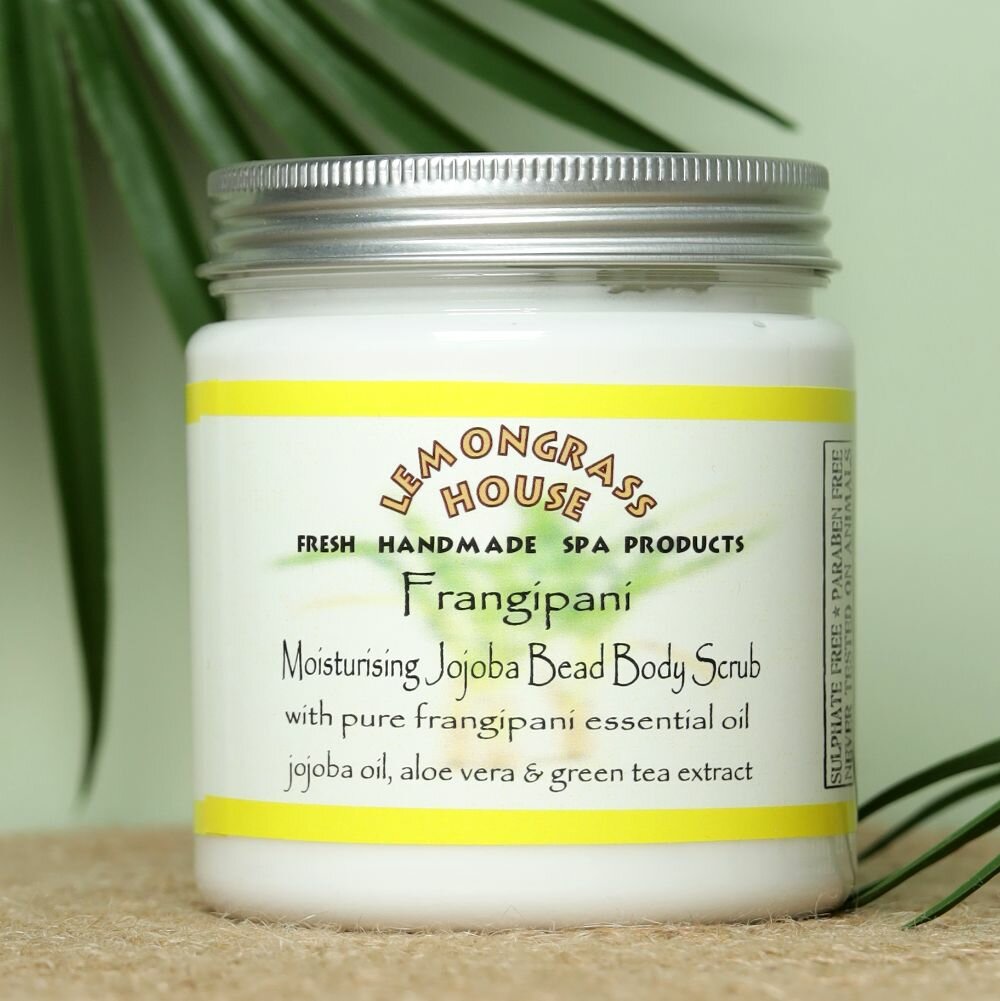 Купить Скраб для тела с гранулами жожоба "Франжипани" 300мл. от Lemongrass House (Таиланд) Натуральный питательный деликатный на кремовой основе с цветочным эфирным маслом плюмерии.