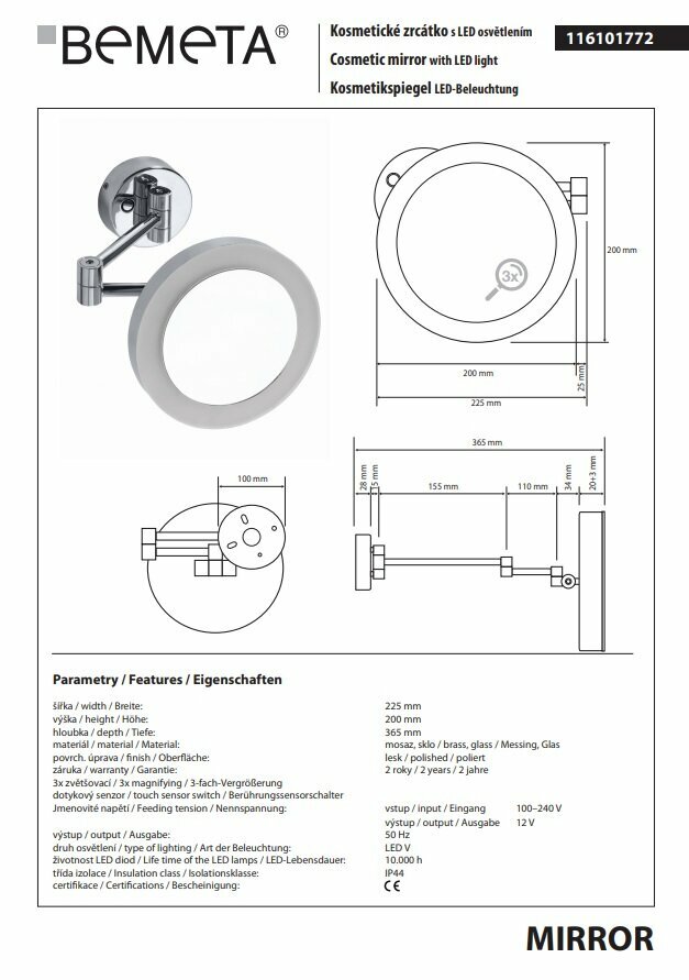 Косметическое зеркало Bemeta, с подсветкой, хром 116101772
