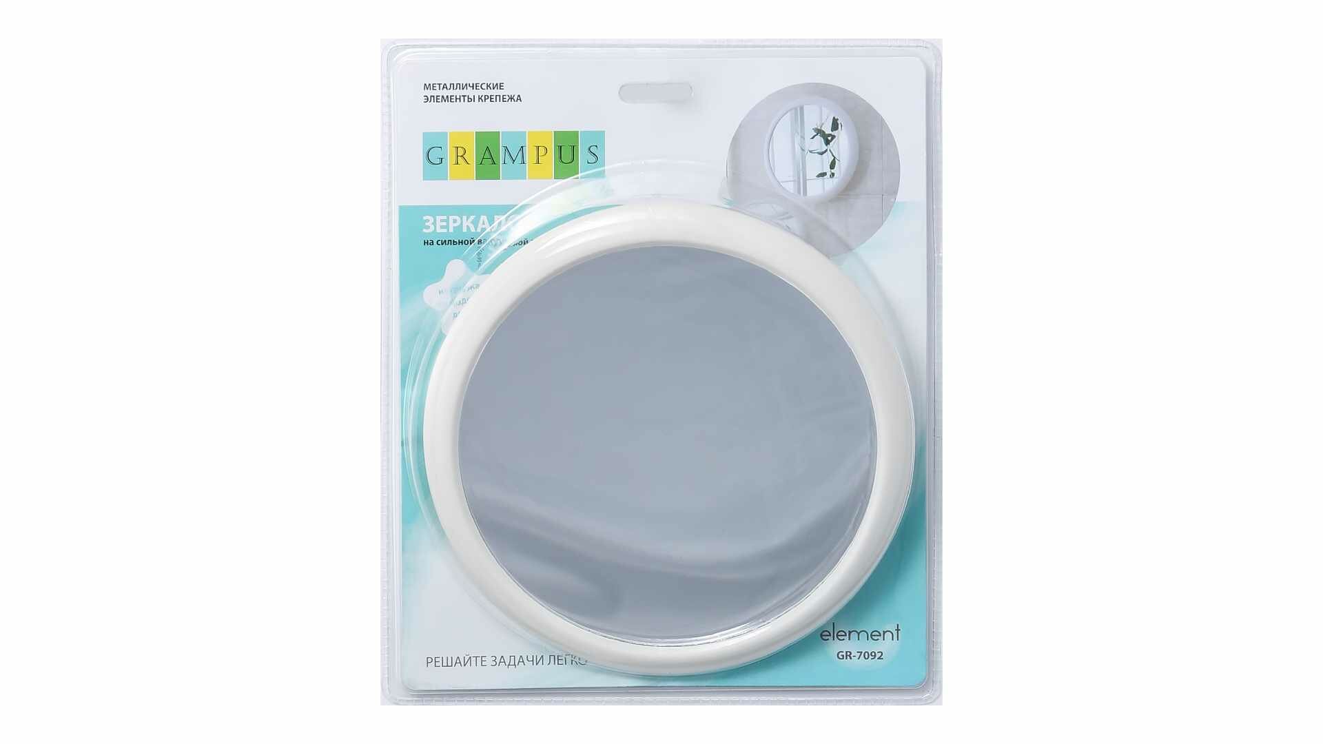 Зеркало косметическое Grampus на вакуумной присоске диаметр 19.5 см материал пластик