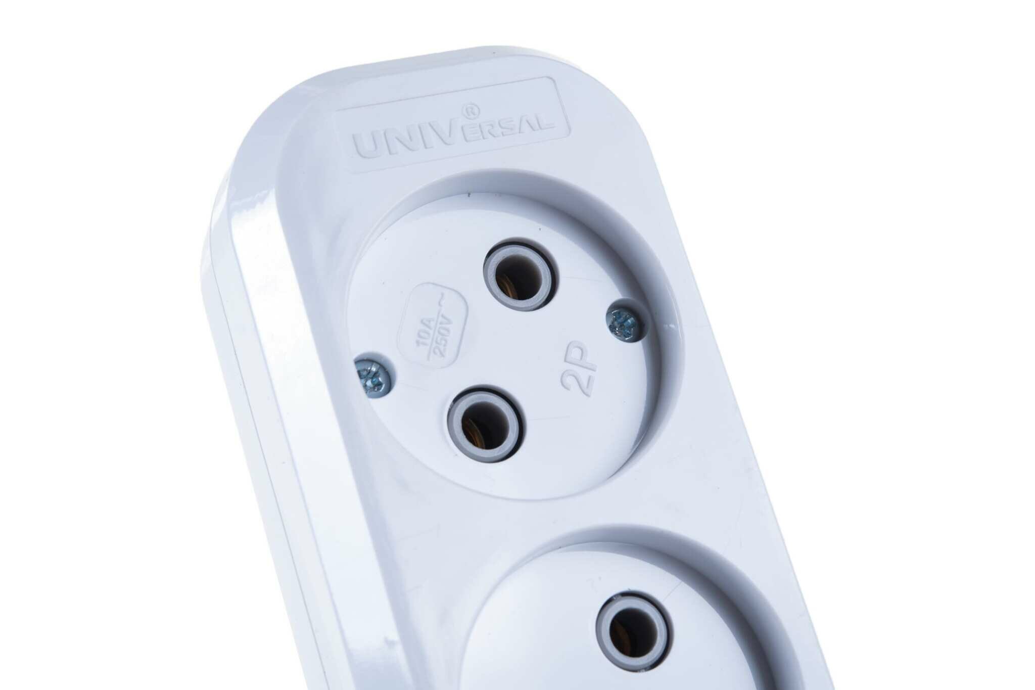2шт. - Розетка-колодка 3 поста наружная без заземления ABS-пластик / UNIVersal; арт. E203; оригинал / - комплект 2шт