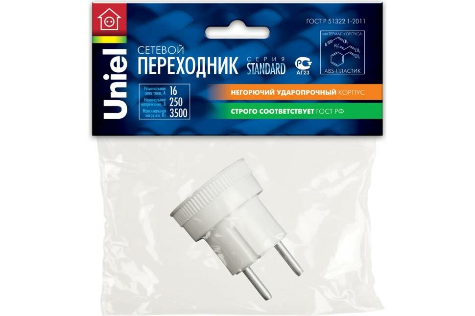 Переходник UNIEL (06708) S-ES1-16R 3500 Вт, 16 А, без заземления, белый