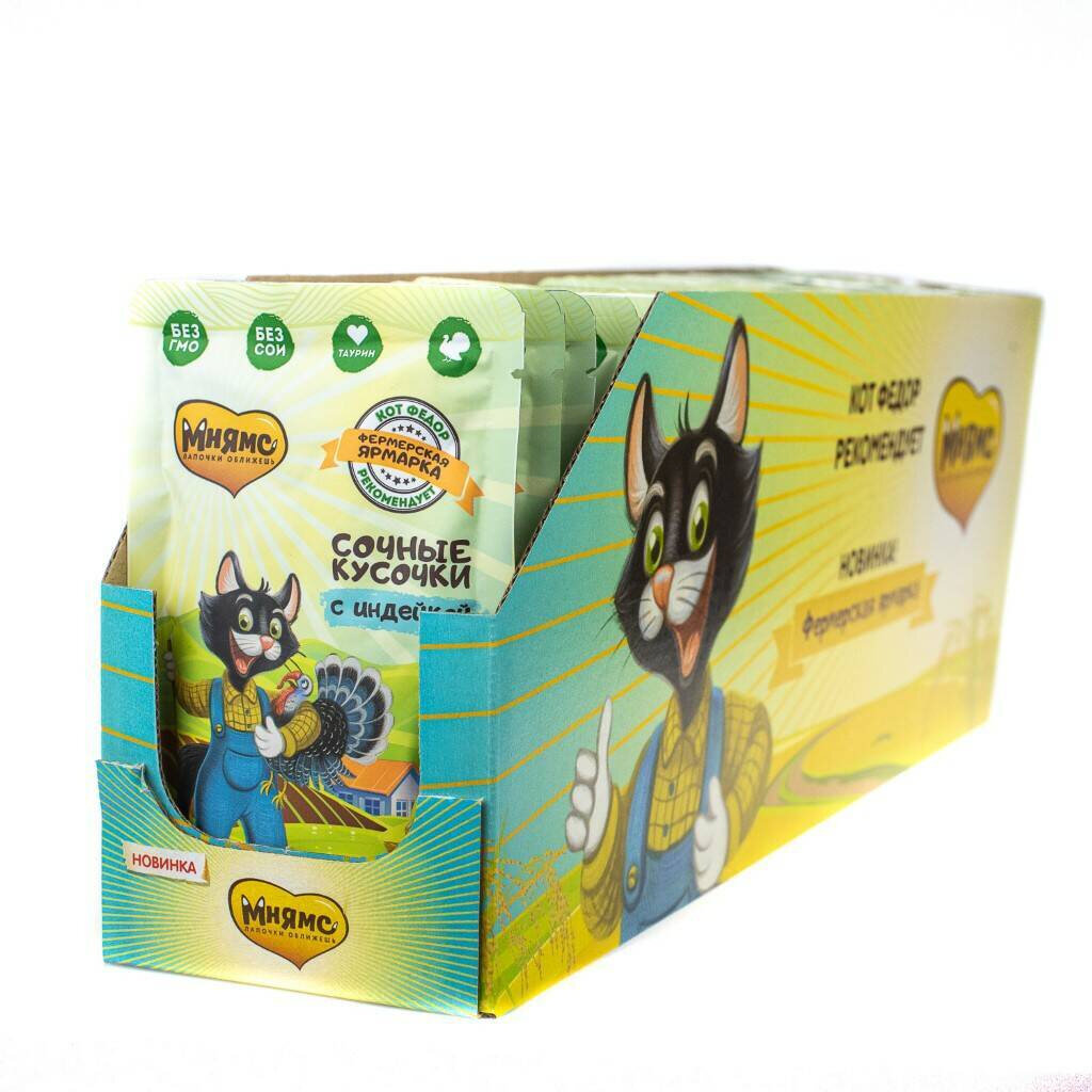 Влажный корм для кошек Мнямс Ферма кота Федора Сочные кусочки, с индейкой, 6 шт. х 85 г (кусочки в соусе)