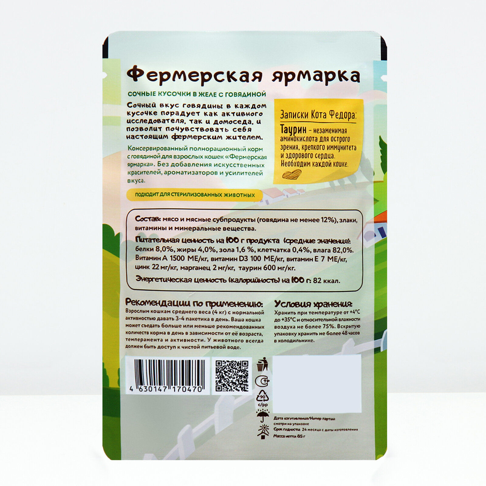 Влажный корм сочные кусочки в желе для кошек с ягненком Фермерская ярмарка линия Кот Федор 85г х 24шт