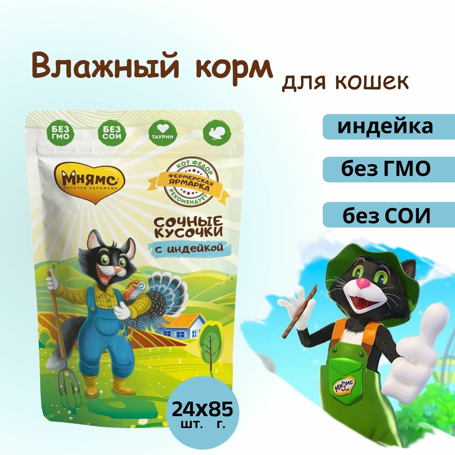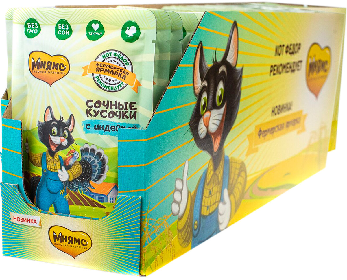 Мнямс сочные кусочки для кошек с индейкой «Фермерская ярмарка» линия Кот Федор 85г х 24 шт.