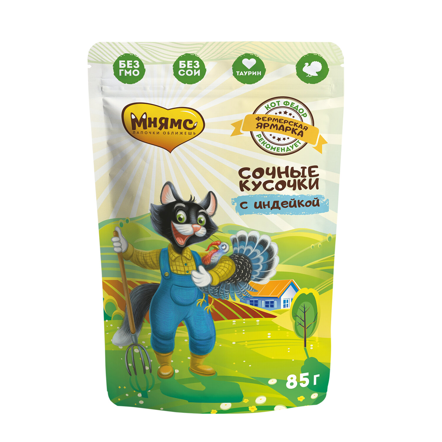 Мнямс сочные кусочки для кошек с индейкой «Фермерская ярмарка» линия Кот Федор 85г х 10шт.