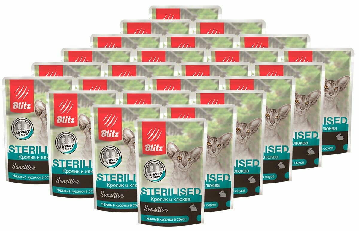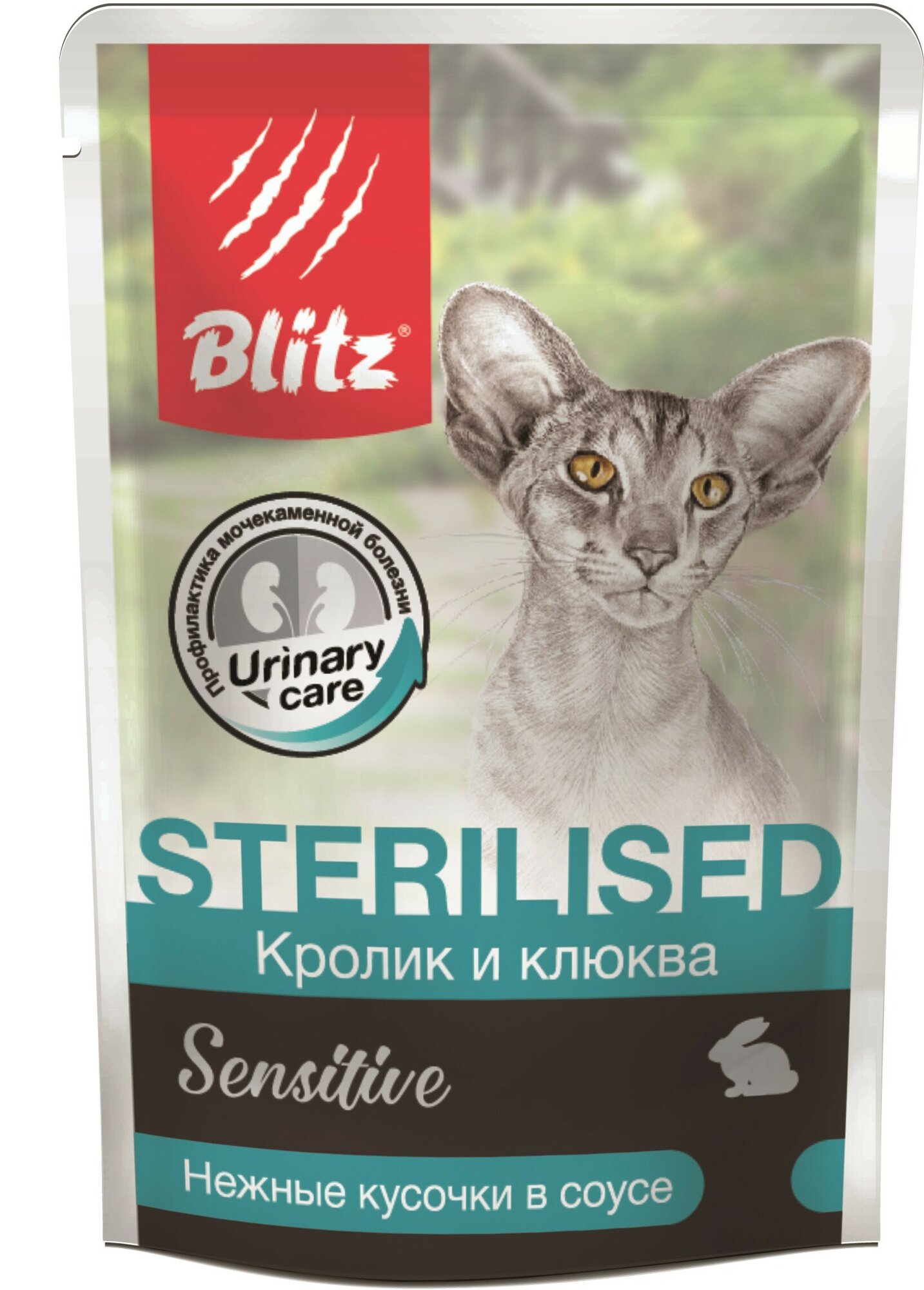 Купить Корм влажный Blitz Sensitive Sterilised Cat для стерилизованных кошек (кролик и клюква) полнорационный, 12 шт