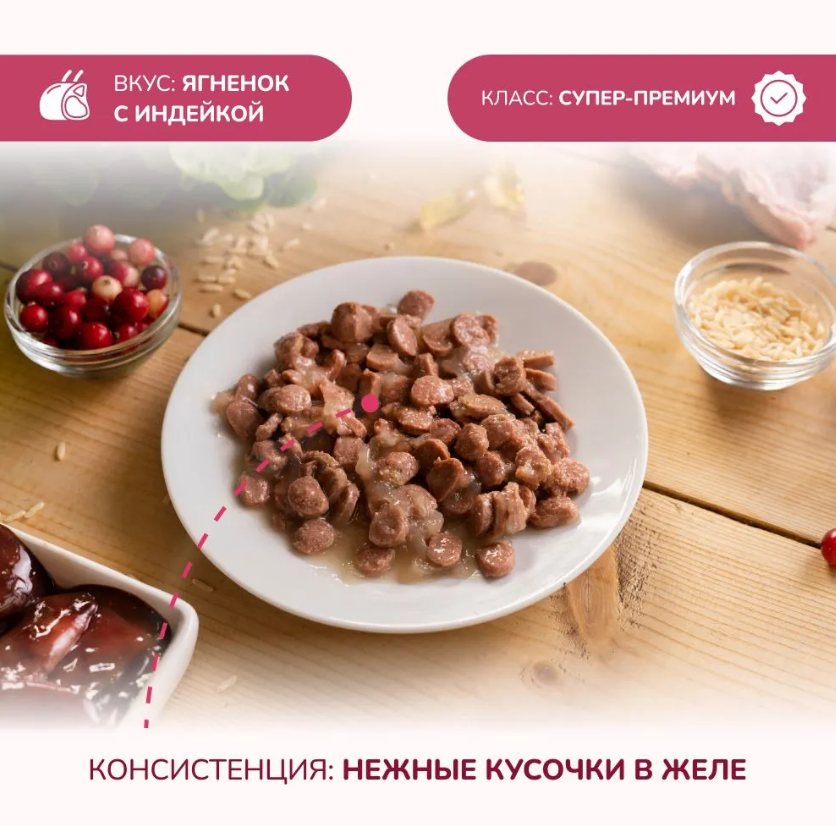 Sensitive Lamb & Turkey in Jelly Adult Cat All Breeds «Ягнёнок с индейкой» нежные кусочки в желе для взрослых кошек всех пород 85 г