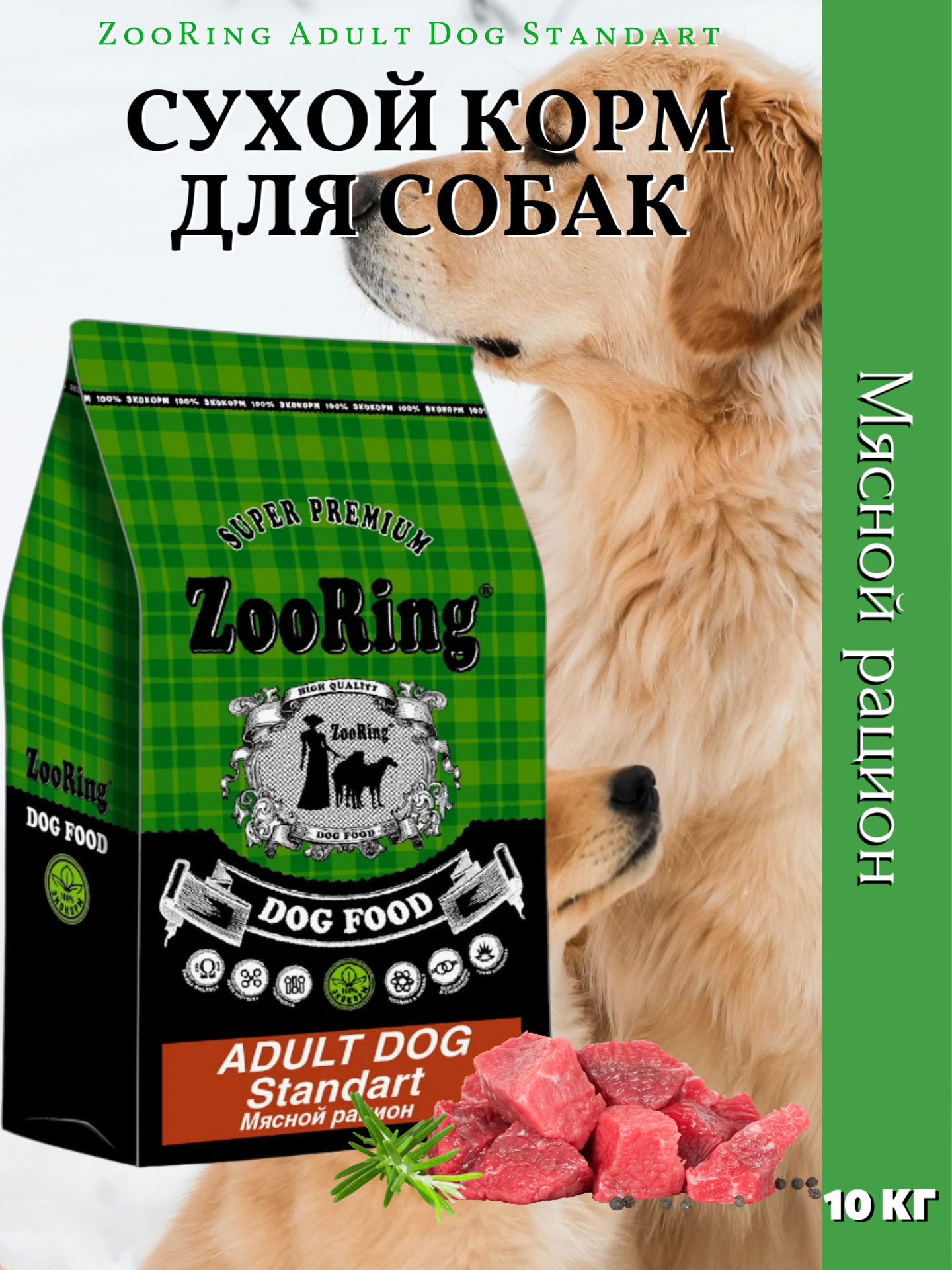 Купить Сухой корм для взрослых собак ZooRing / Зооринг Adult Dog Standart Мясной рацион, 10кг