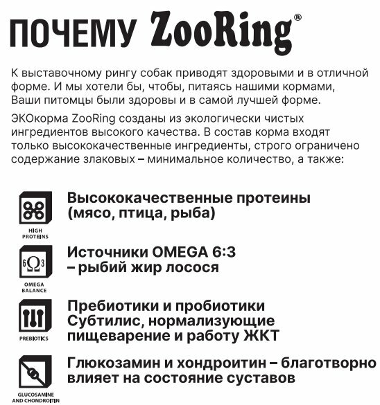 | Отзыв: | Собака ест только его, пробовал разные премиум корма, зооринг лучше всех |
