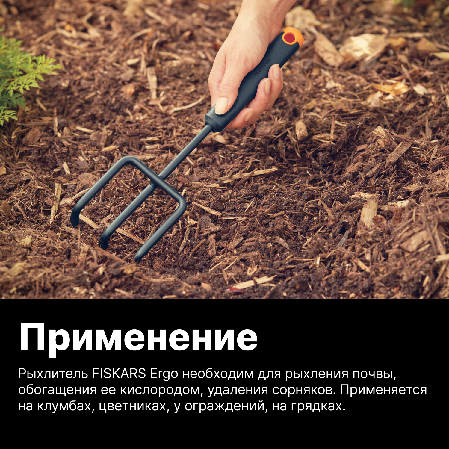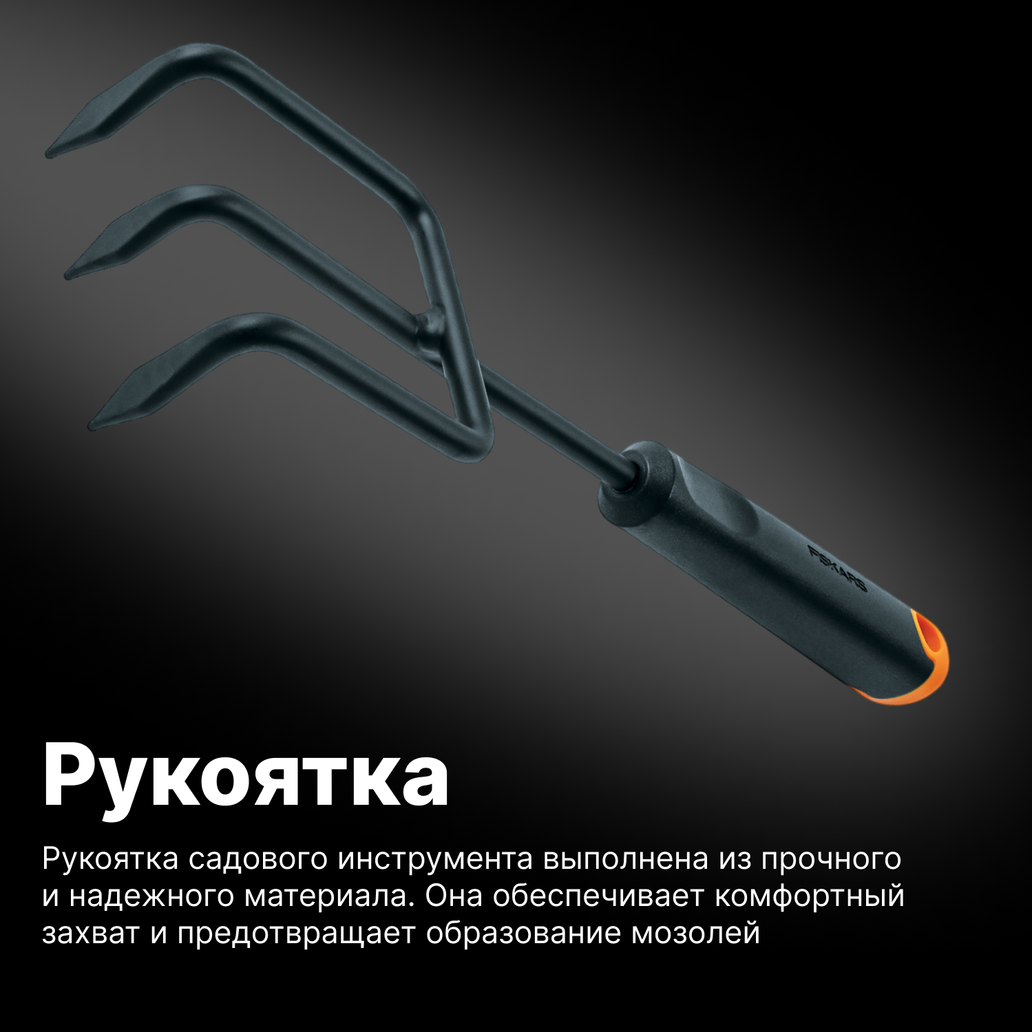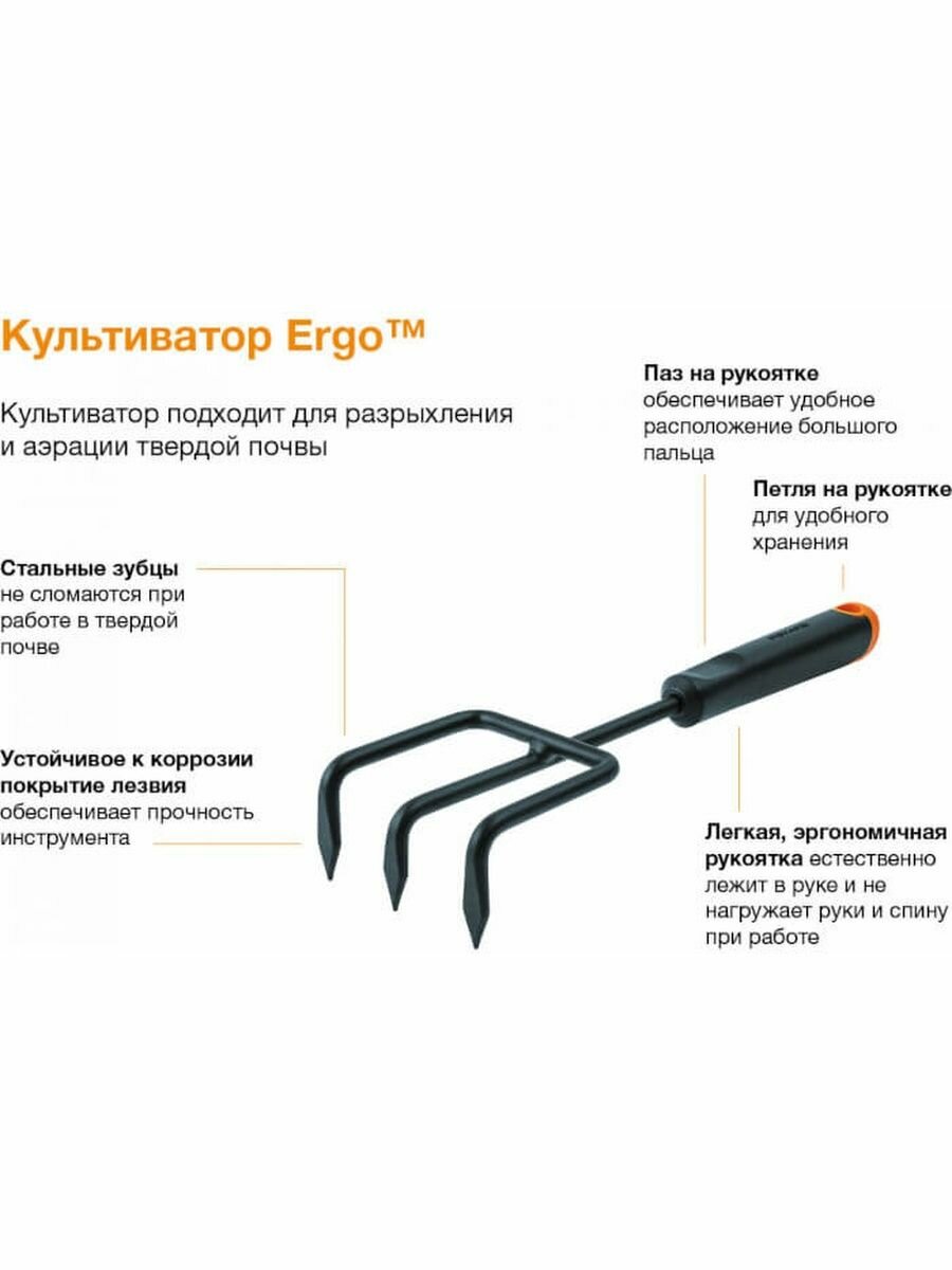 Культиватор Ergo FISKARS (1027019), сталь, 3 зубца, длина 305 мм