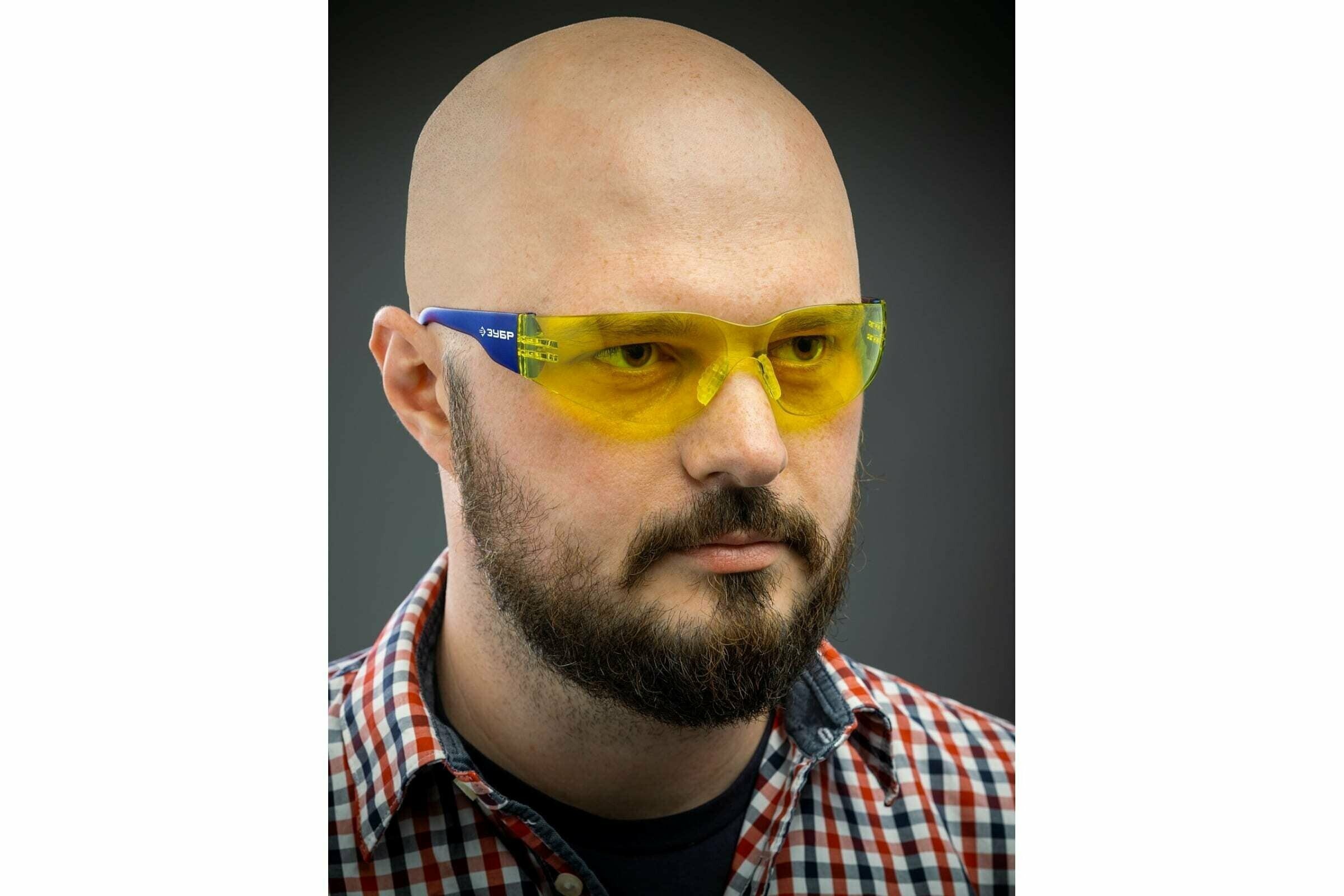 Защитные жёлтые очки ЗУБР протон линза увеличенного размера, открытого типа