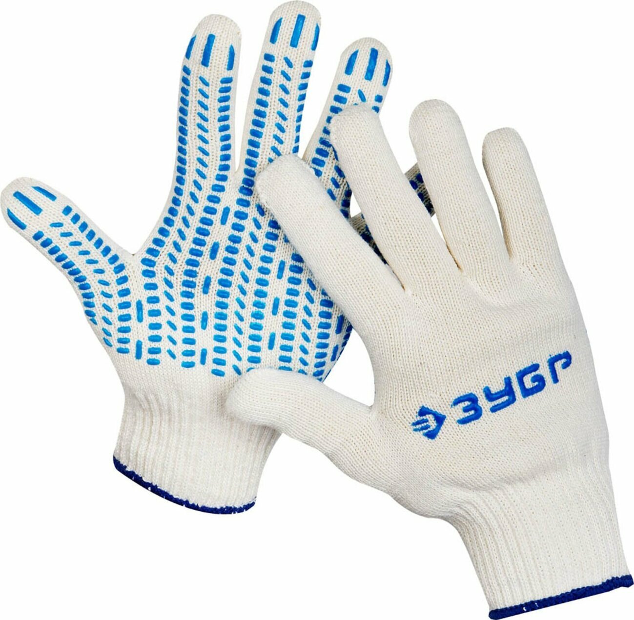 ЗУБР Перчатки ЗУБР трикотажные, 10 класс, х/б, с защитой от скольжения, L-XL