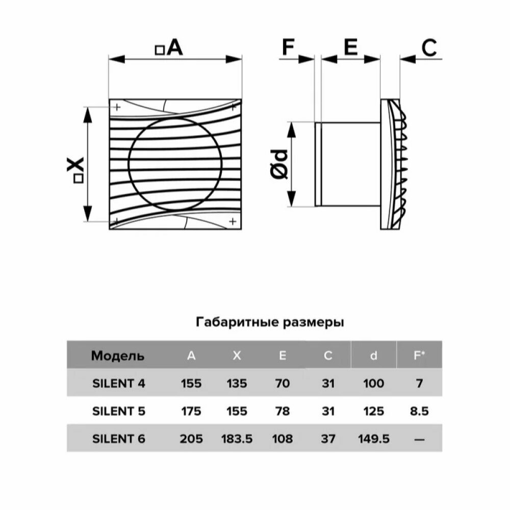 Вентилятор осевой вытяжной SILENT 4C, с обратным клапаном D 100