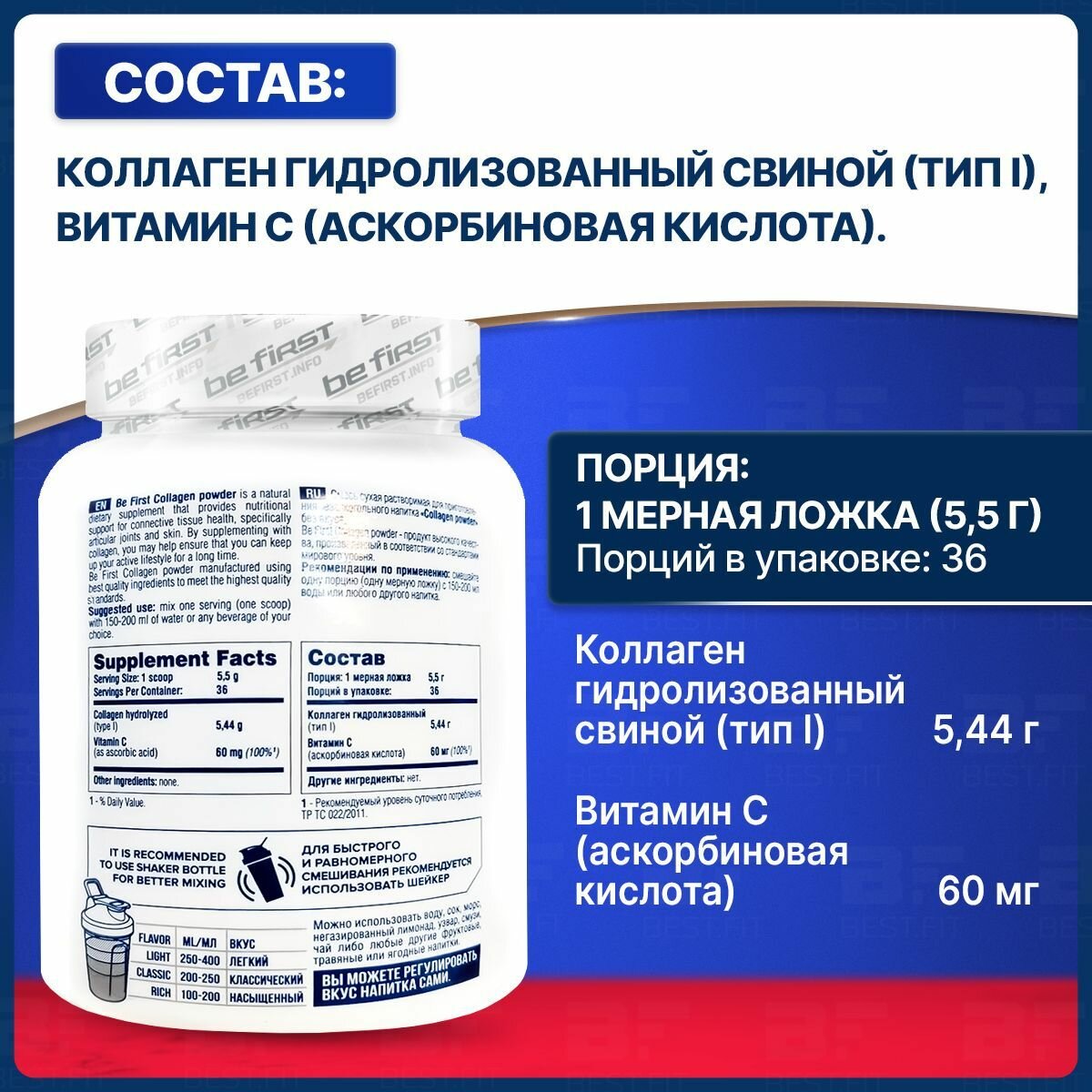 Купить Be First Collagen + vitamin C 200 гр (Без вкуса)