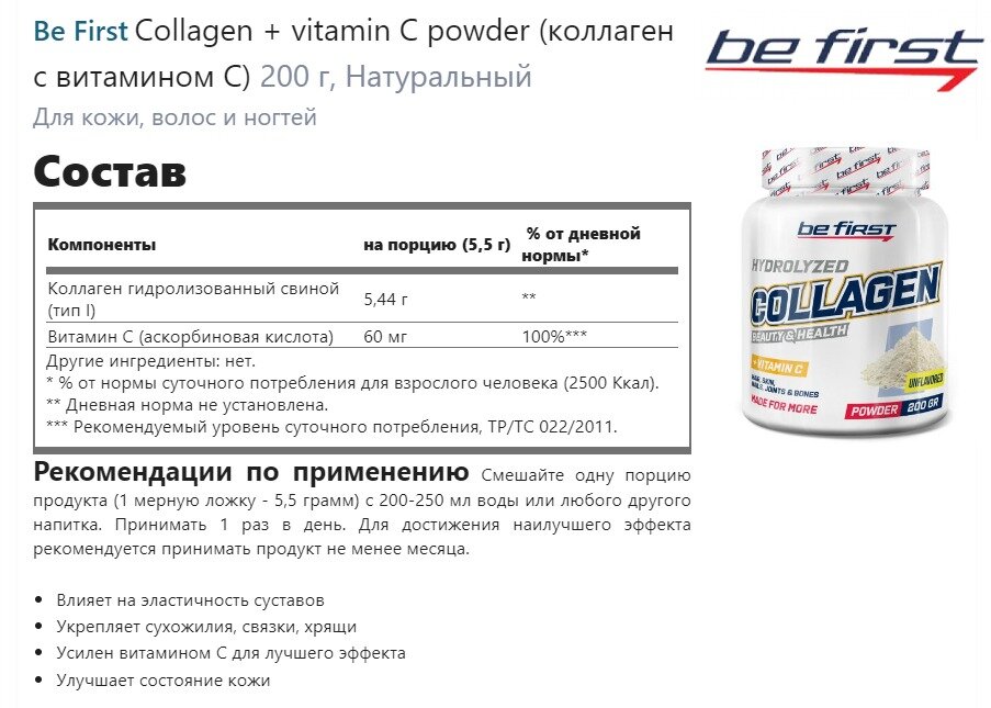 Ниже Вы можете прочитать отзывы на Be First Collagen + vitamin C 200 гр (Без вкуса), ознакомится с подробными характеристиками, посмотреть интересные обзоры и фотографии на Be First Collagen + vitamin C 200 гр (Без вкуса).