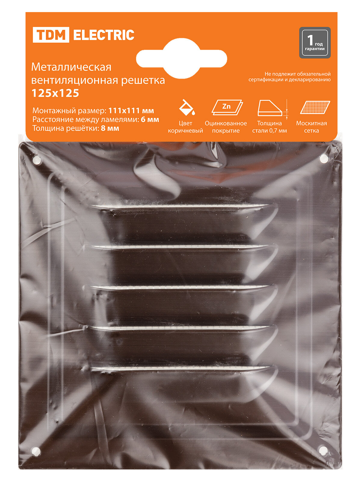 СохранитьРешетка металл. 125х125, коричневая, с покрытием полимерной эмалью, TDM интересное: