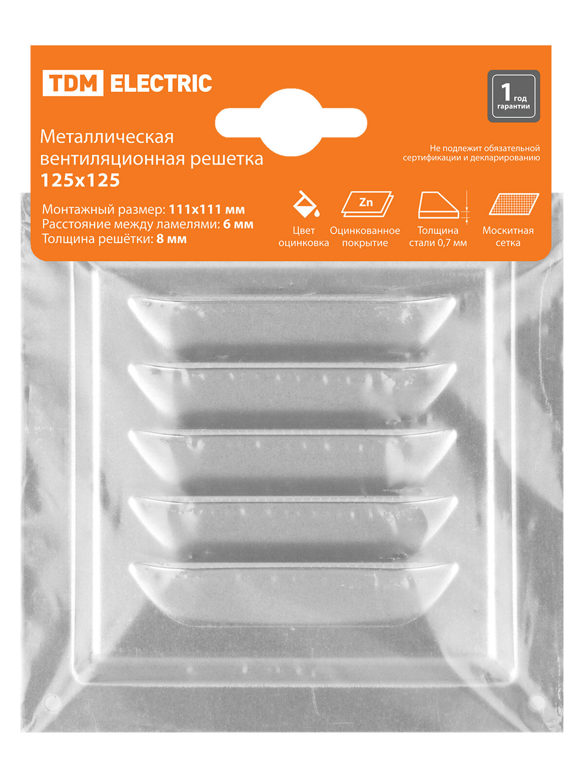 Купить Решетка металл. 125х125, с оцинкованным покрытием, TDM