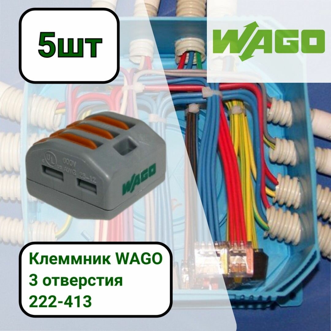 Клемма WAGO 222-413, 5 шт., коробка