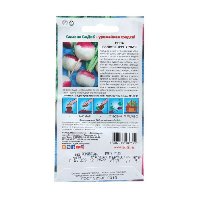 Семена Репа "Ранняя Пурпурная", 1 г, 6 штук интересное: