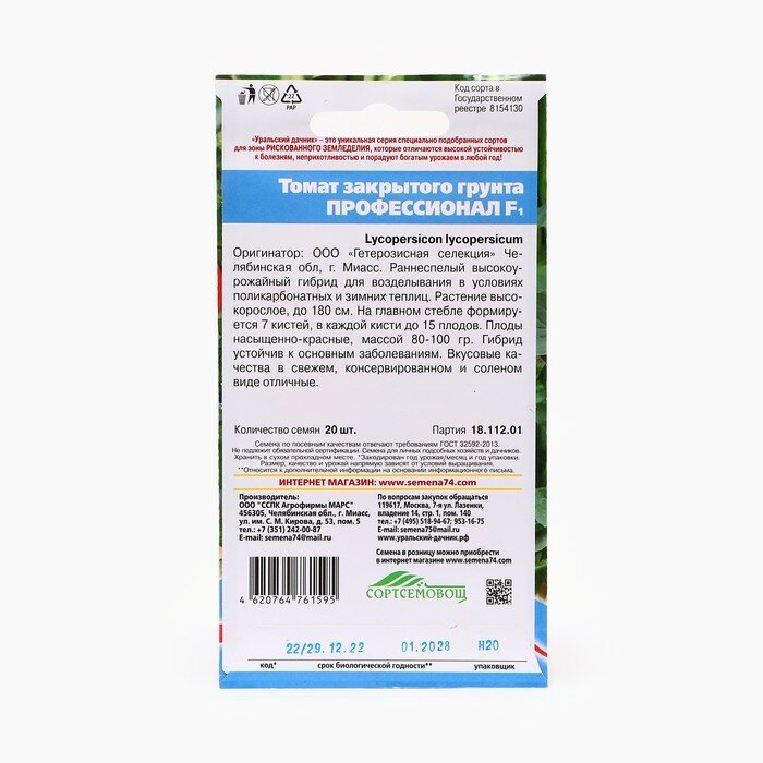 Ниже Вы можете прочитать отзывы на Семена Томат "Профессионал", 20 шт, 5 штук, ознакомится с подробными характеристиками, посмотреть интересные обзоры и фотографии на Семена Томат "Профессионал", 20 шт, 5 штук.