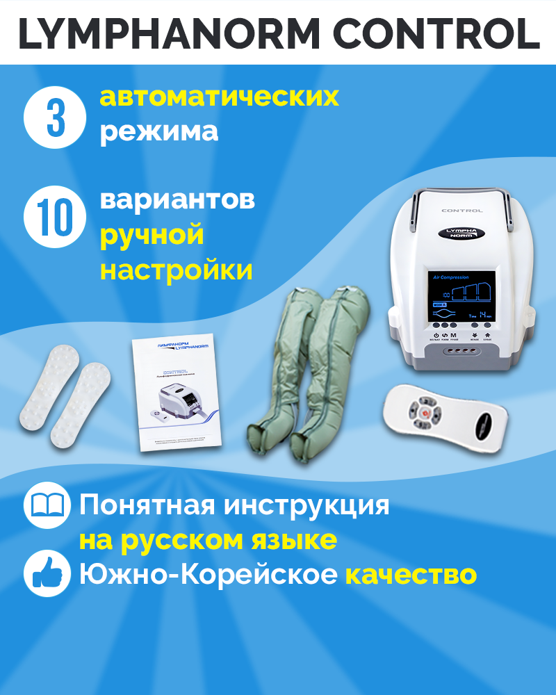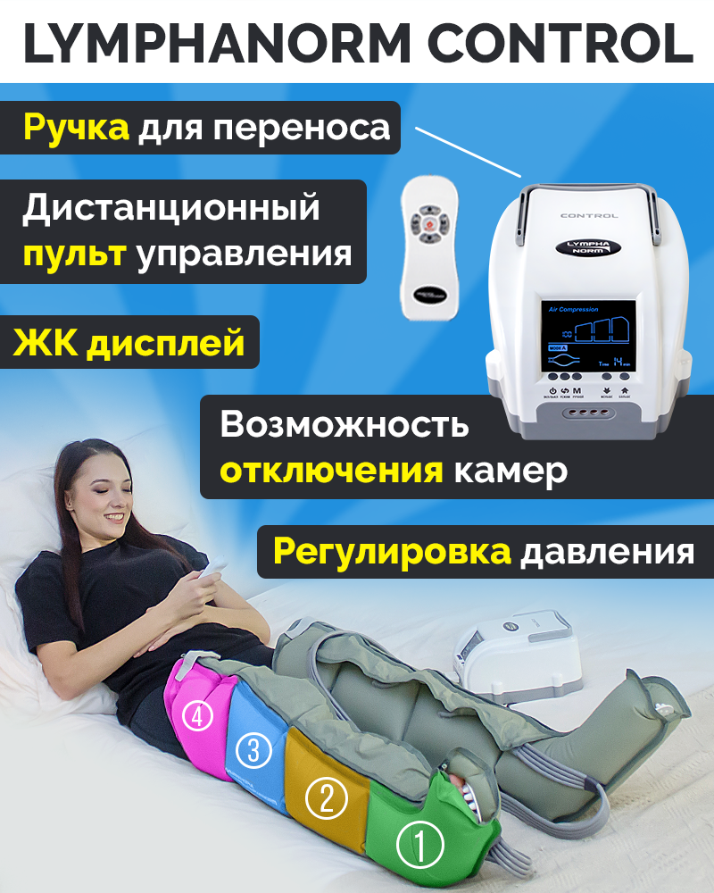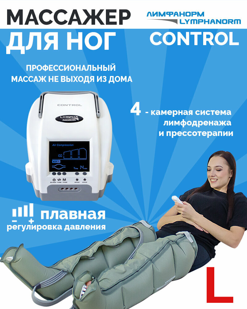 CONTROL LymphaNorm + 2 манжеты для ног L — профессиональный массажер для прессотерапии и лимфодренажа для дома