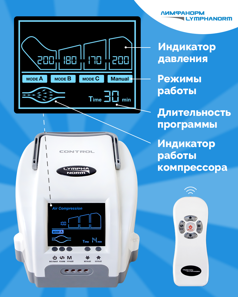 Лимфодренажный массажер CONTROL + 2 манжеты для ног XL LymphaNorm— профессиональный массажер для прессотерапии и лимфодренажа для дома