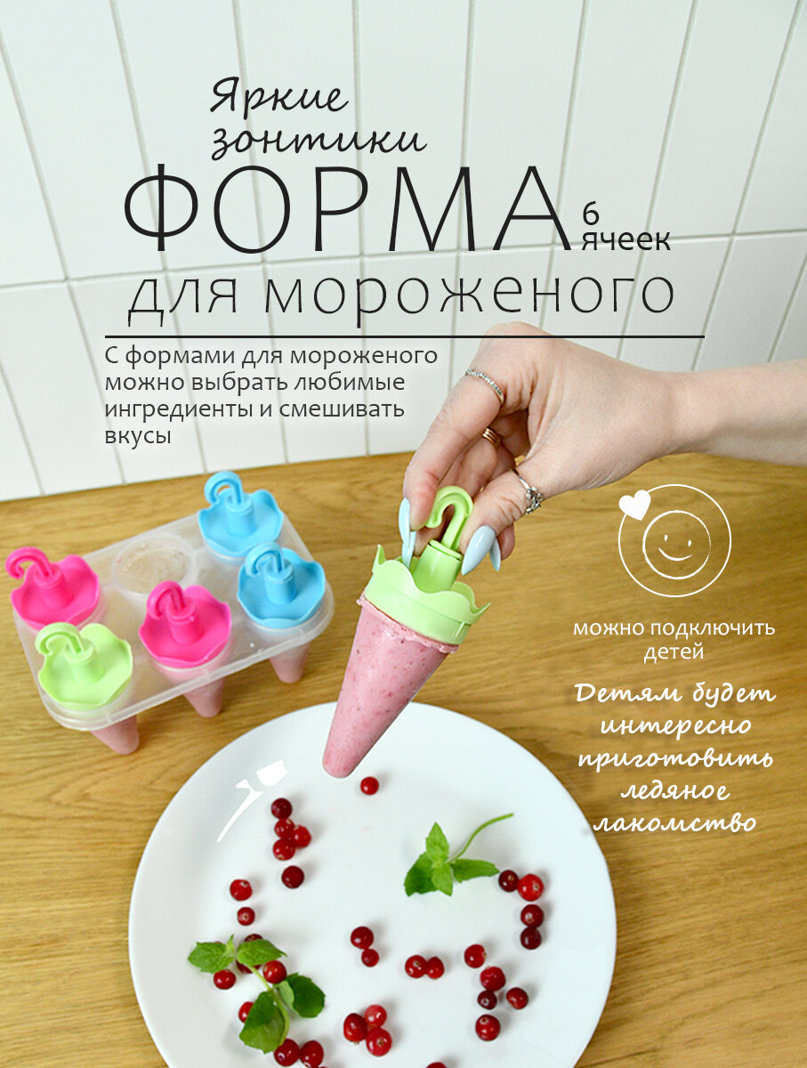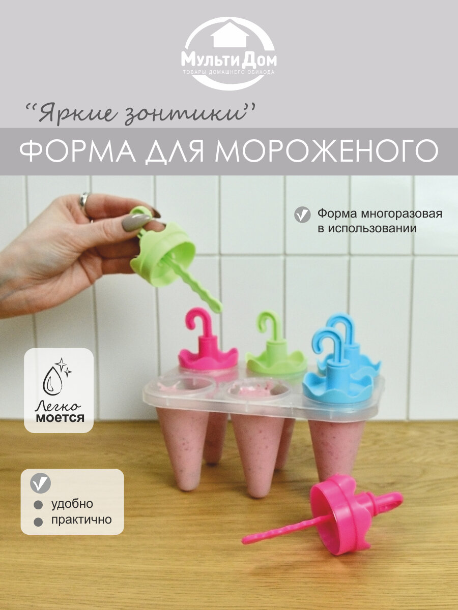 Формы для мороженого "Яркие зонтики", 6 ячеек, 16,5х12,5х11 см интересное: