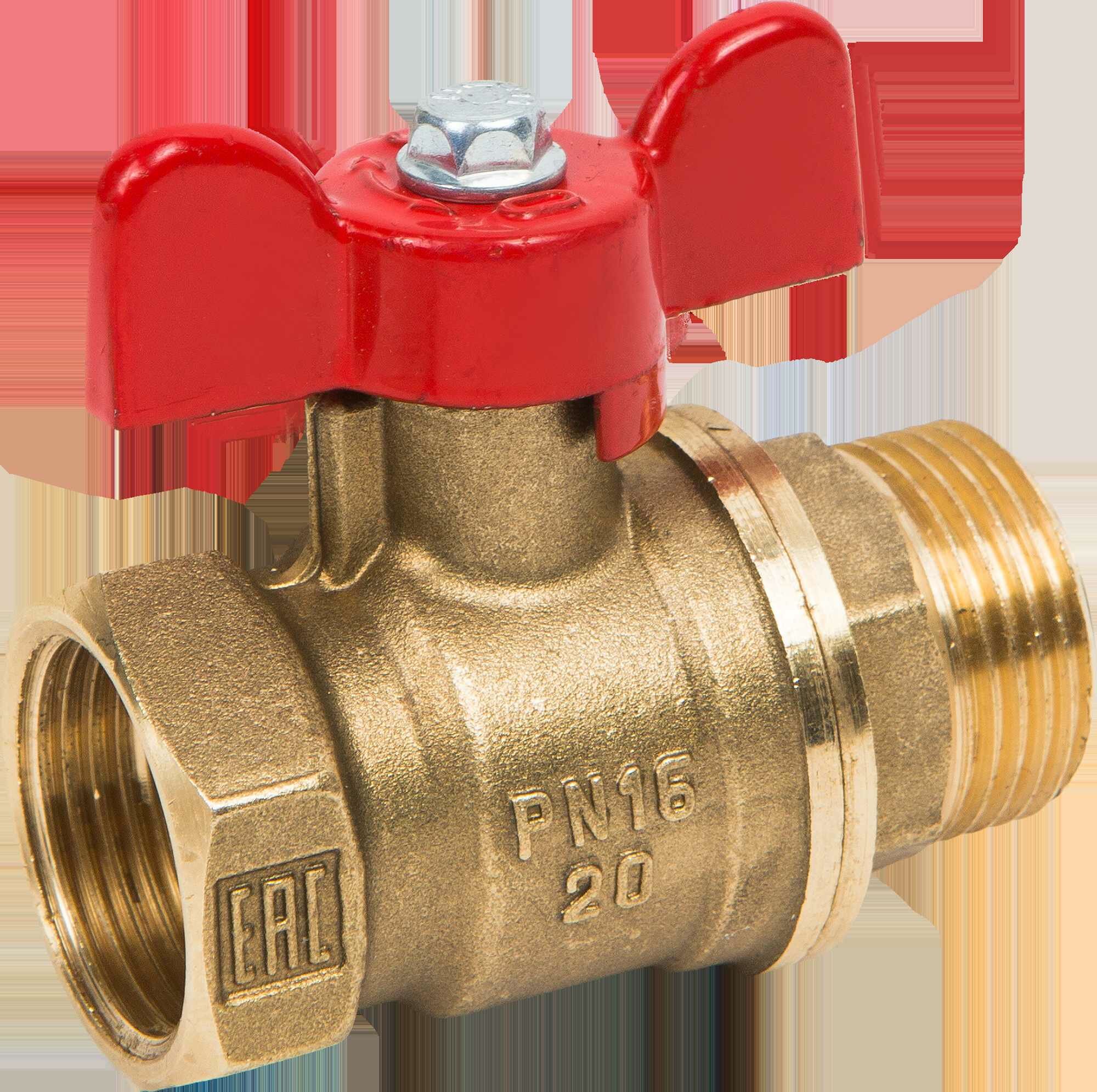 Купить Кран шаровой латунь 11Б27фт1М Ду 20 Ру40 ВР/НР полнопроходной бабочка красная VALFEX VF.218.LB1.034