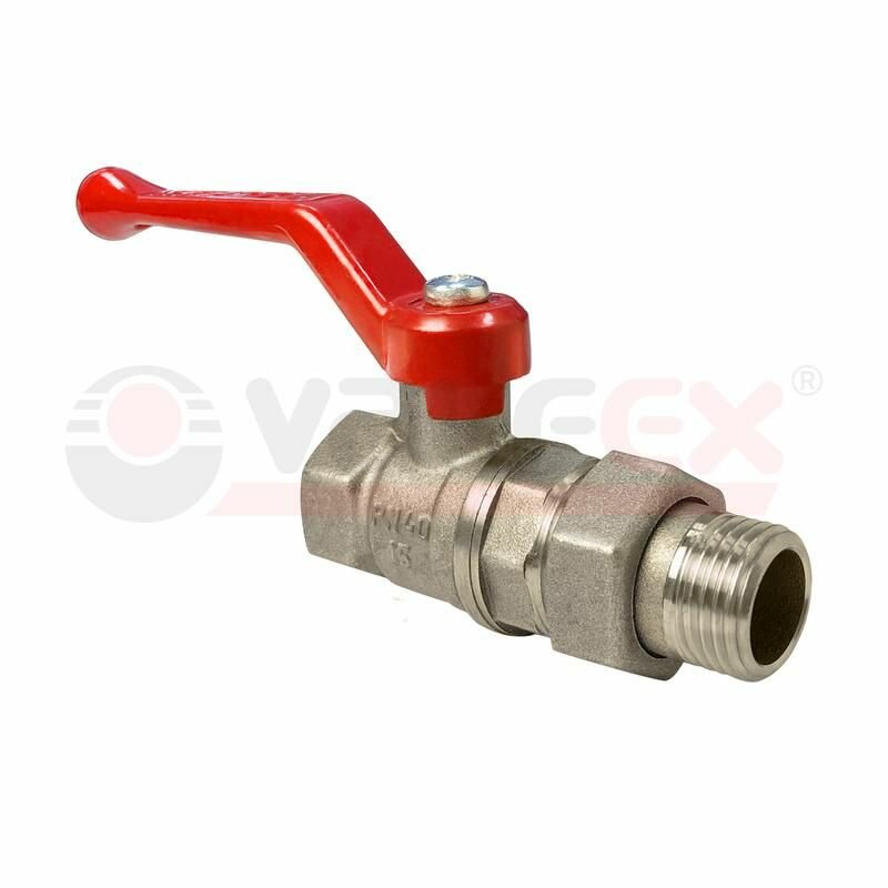 Кран шаровой латунь 11Б27фт1М Ду 15 Ру40 ВР/НР полнопроходной рычаг красный VALFEX VF.215.LR1.012