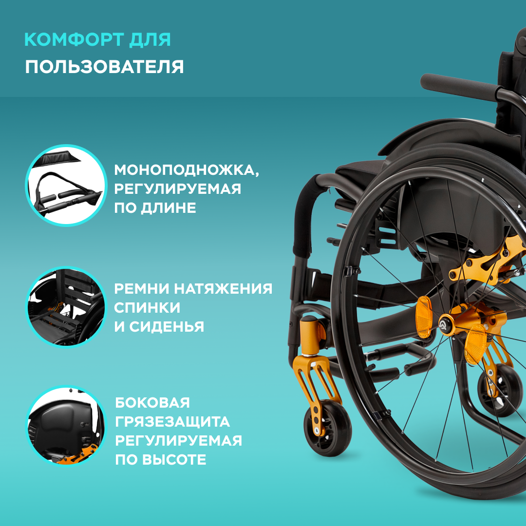 Кресло-коляска инвалидная для активной эксплуатации Ortonica Active Life 3000 c шинами Schwalbe RightRun, ширина сиденья 45 см