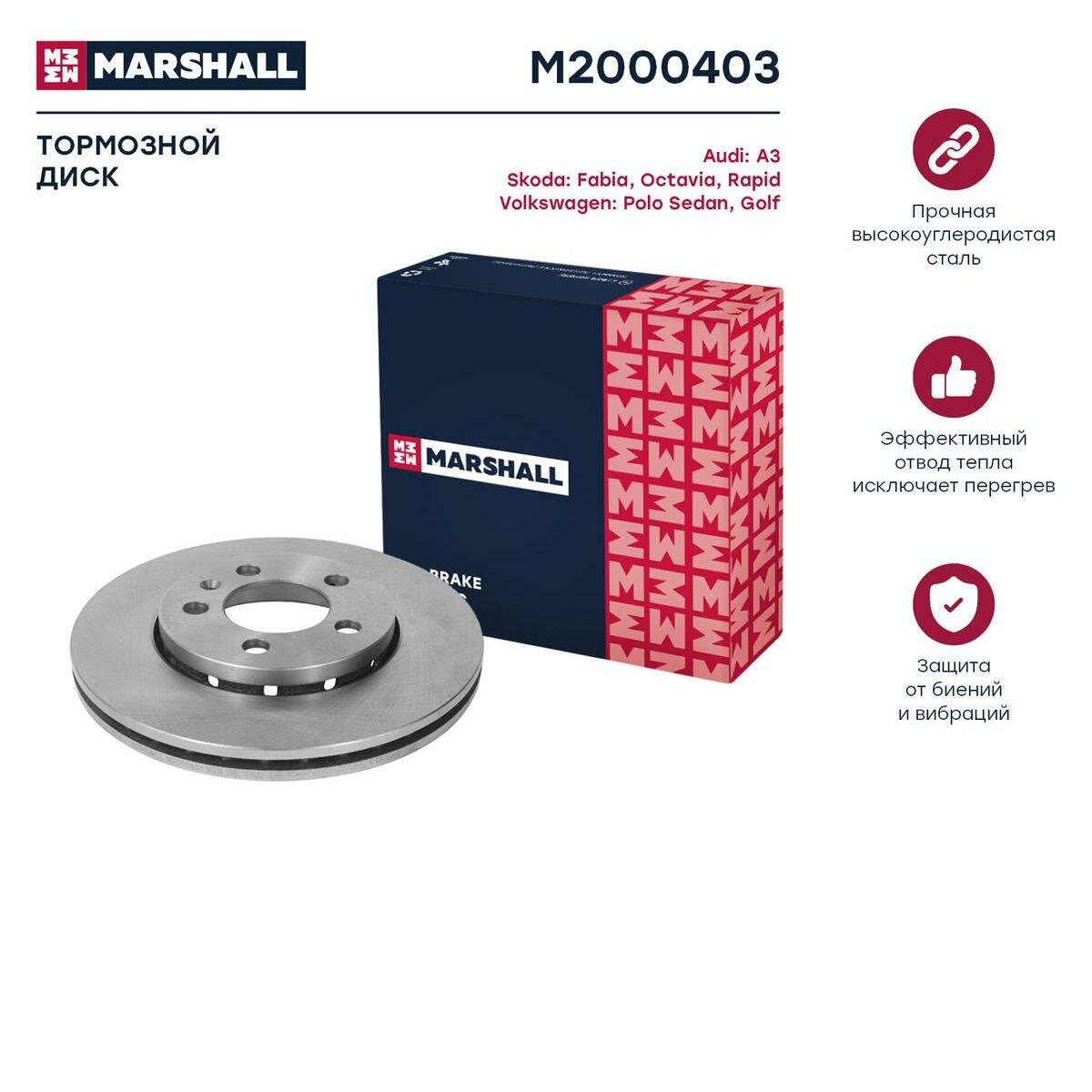 MARSHALL M2000403 Тормозной диск передн. Skoda Fabia I-III 99- / Octavia I (A4) 96- / Rapid 12-, VW Polo Sedan 10- () | перед прав/лев |