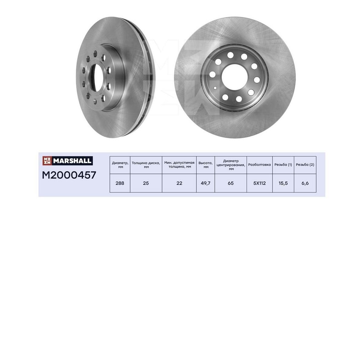 Диск тормозной VAG Octavia II (1Z), III 04-, Yeti 09-, Golf V-VII 03- передний 288 x 25 Marshall MARSHALL M2000457 | цена за 1 шт