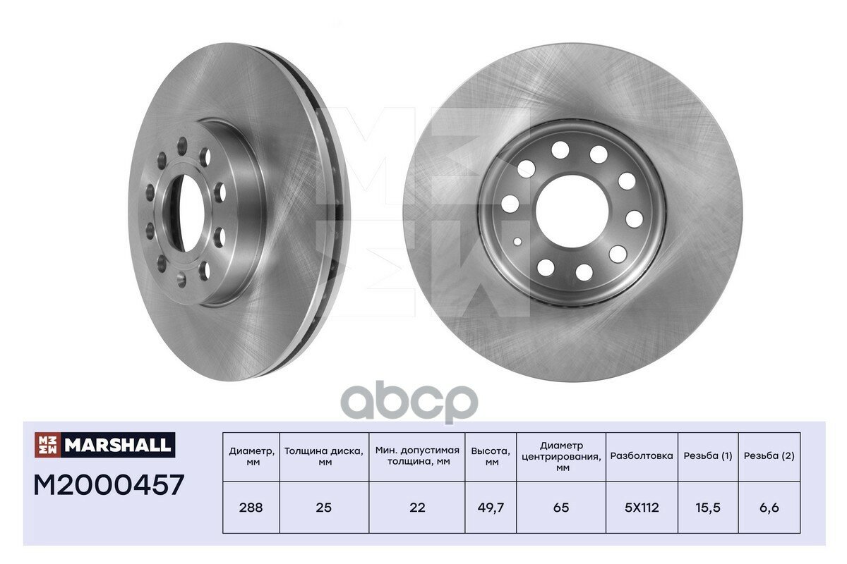 M2000457_диск Тормозной Передн.! Skoda Karoq 17> / Octavia Ii, Iii, Iv 04>, Vw Golf V-Viii 03> MARSHALL арт. M2000457
