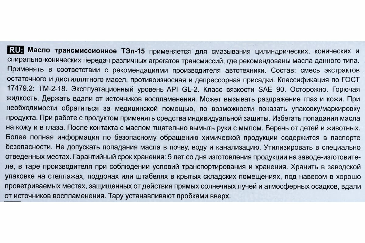 Трансмиссионное масло Волга-Ойл ТЭП - 15 (Нигрол), SAE 90, API GL-2, Минеральное 5 л