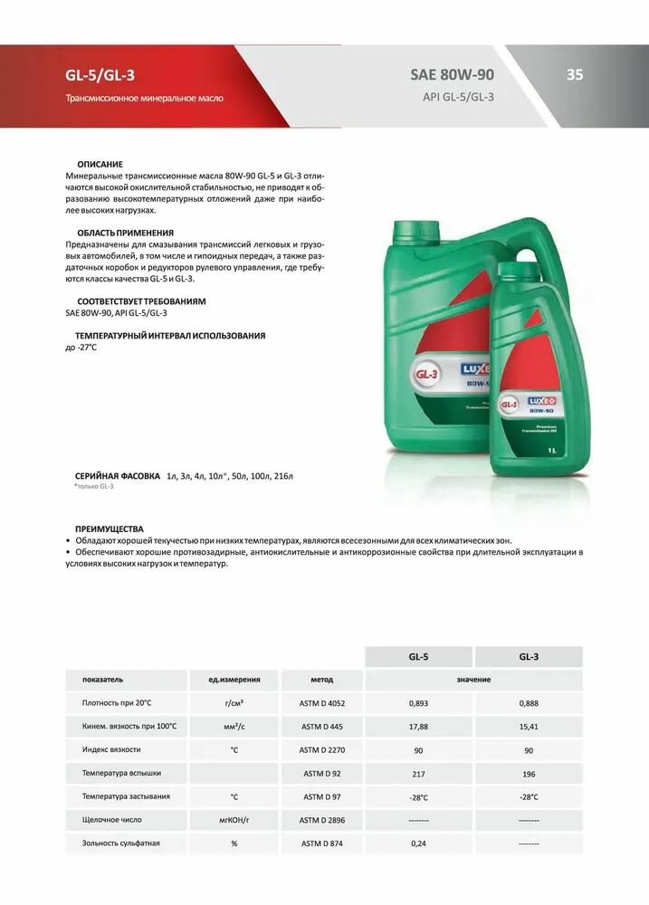 | Вязкость по SAE | 80W-90 |