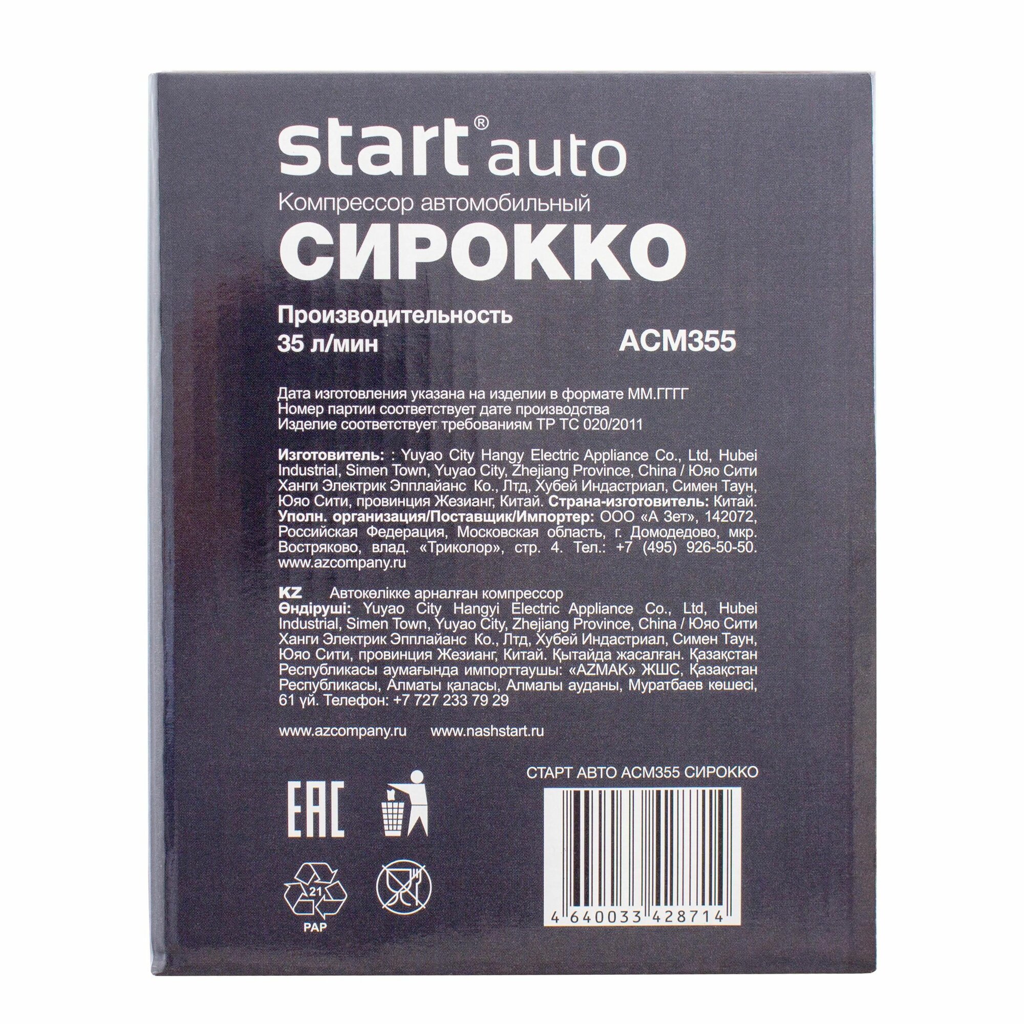 Старт автомобильный компрессор авто ACМ355 сирокко