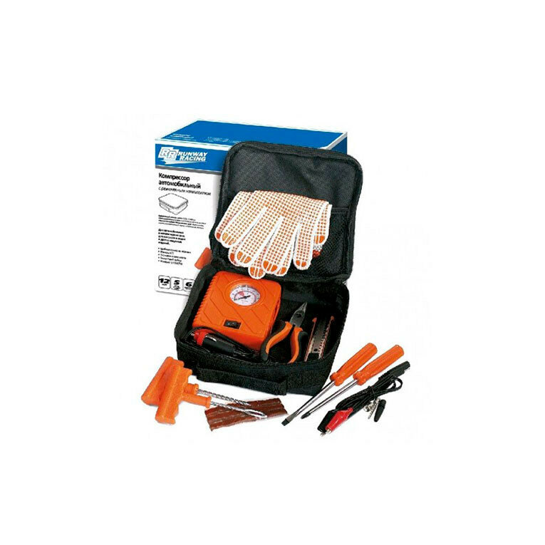 Компрессор RUNWAY RACING RR132 автомобильный 12в с ремонтным набором