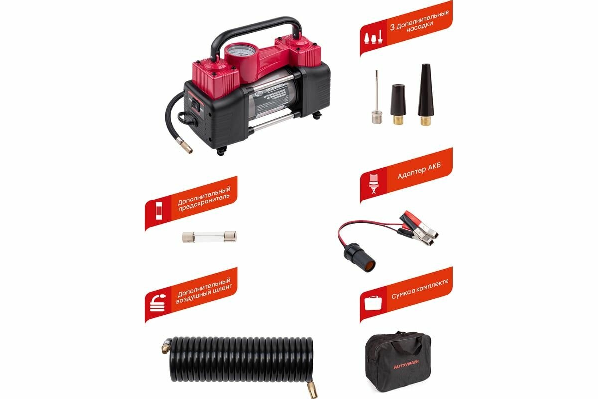 Автомобильный компрессор AUTOVIRAZH AV-010888 красный/черный
