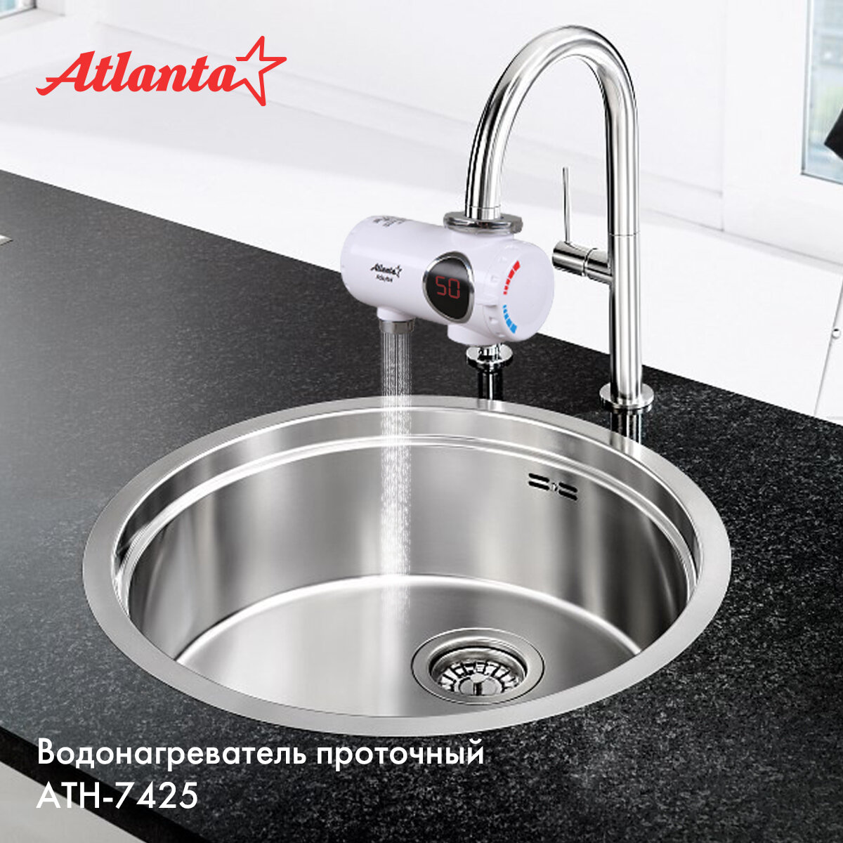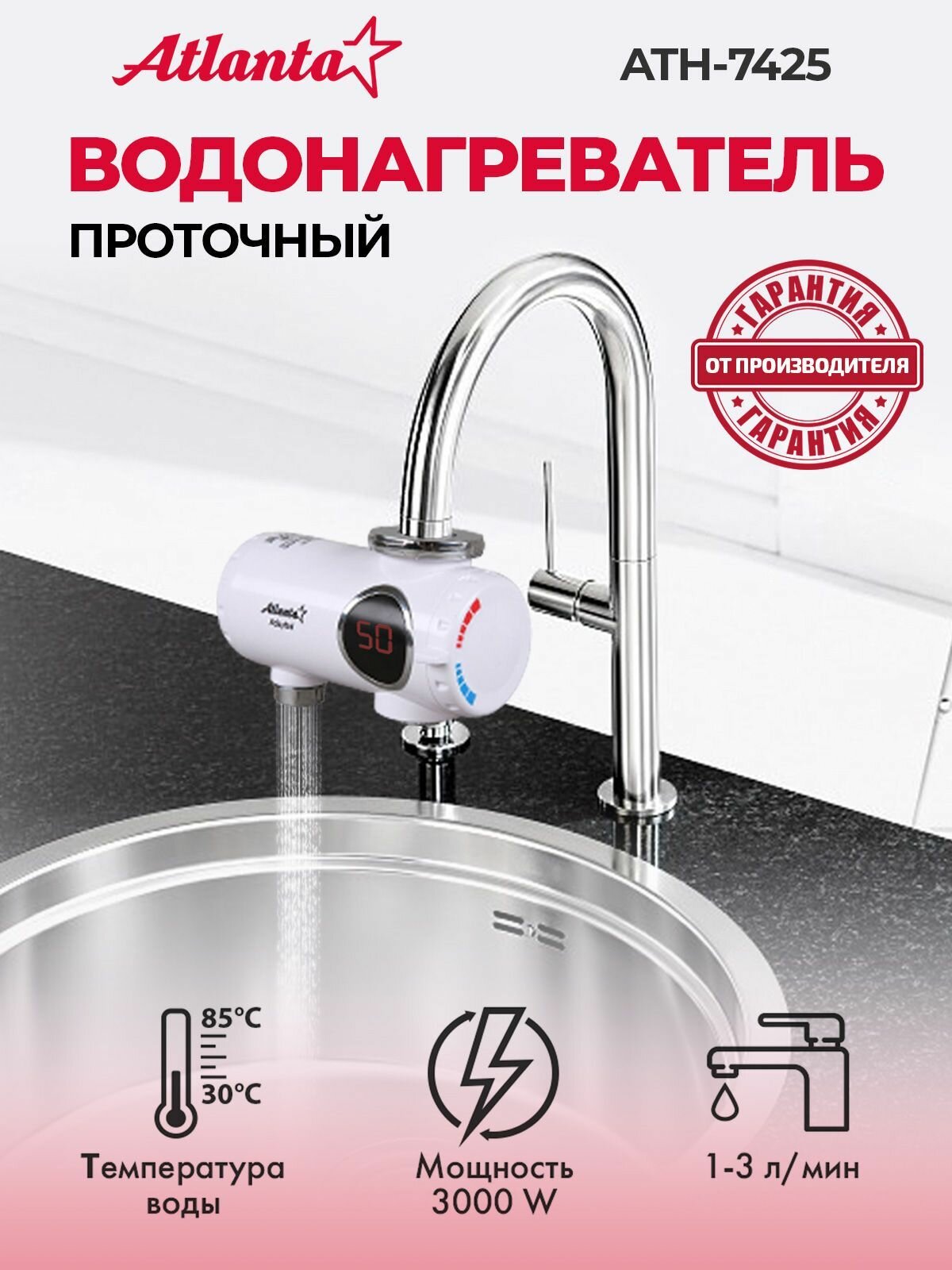 Водонагреватель проточный на кран Atlanta ATH-7425, 3 кВт, мгновенный нагревы интересное: