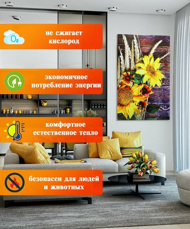 Интерьерная картина-обогреватель / Обогреватель настенный "Подсолнухи" 60х105 см