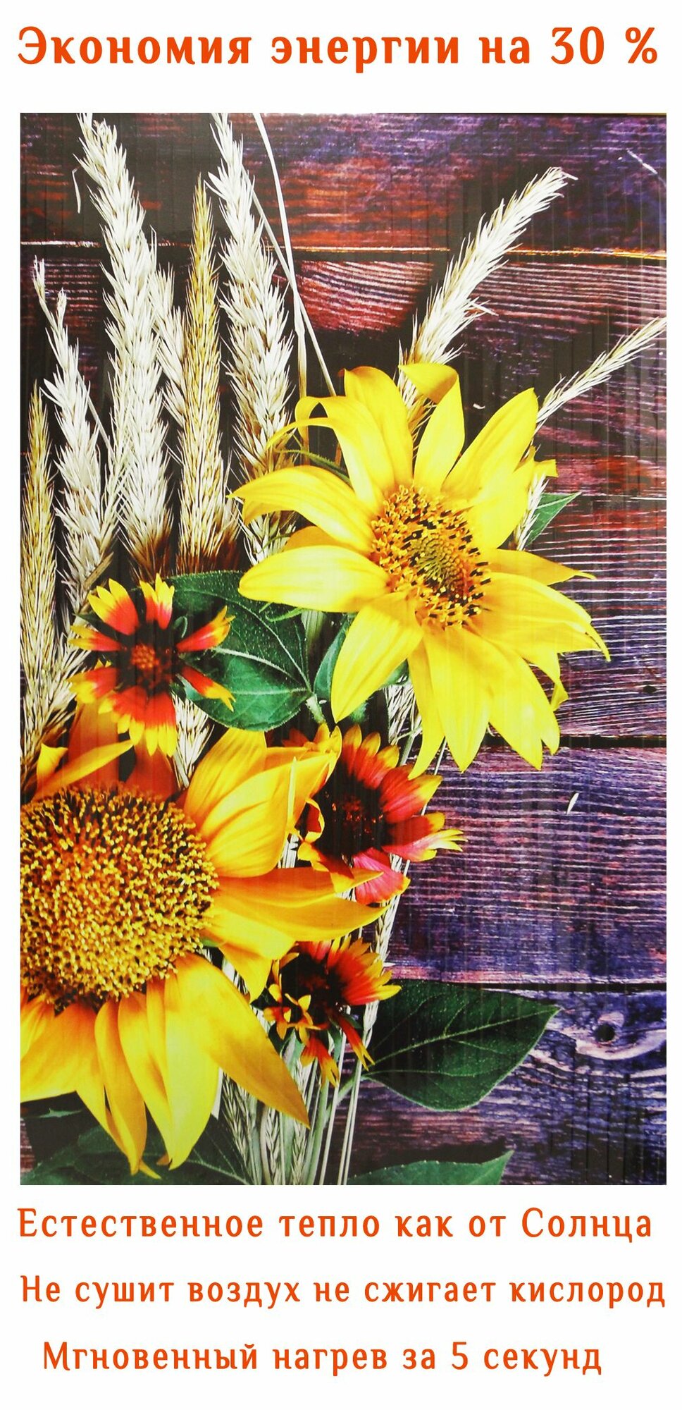 Купить Электрический доброе тепло обогреватель гибкий настенный инфракрасный, рисунок Подсолнухи, 500Вт