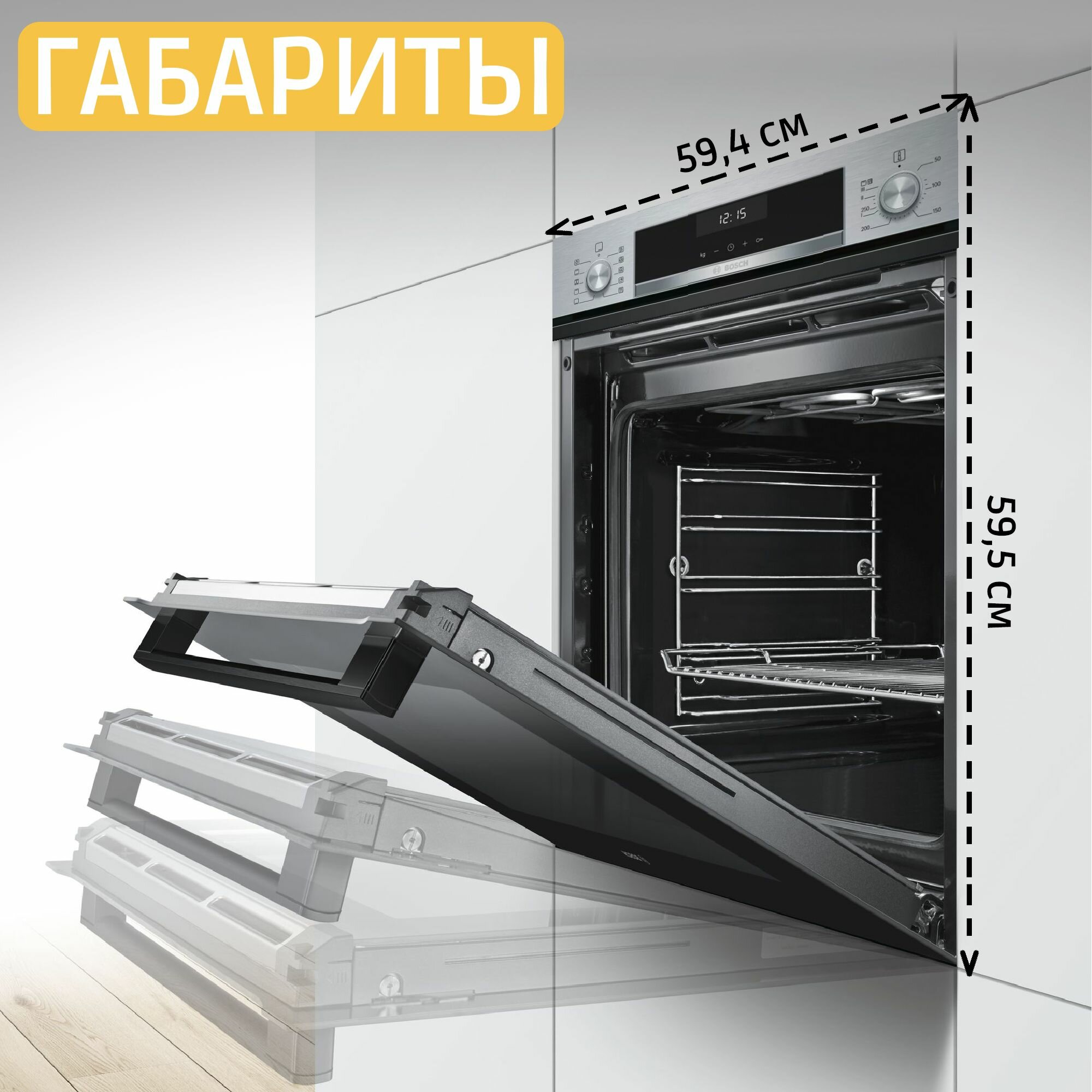 СохранитьДуховой шкаф Bosch HBG517ES0R, Serie 6, 3D горячий воздух, быстрый разогрев, гриль с конвекцией, серебристый интересное: